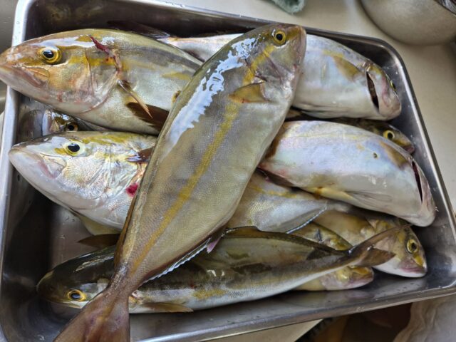 知り合いの船に乗せてもらい、ゆったり船釣りをしてきました! 最初は南蛮漬け用にサビキで豆アジを釣りました! その後は沸いているというシオを釣るために、確保した豆アジを泳がせてみると、食べ頃サイズの狙いのシオが釣れました! シオの食いが落ちてきたら、たて釣りの仕掛けに豆アジを複数付けてみると、効果大でした! タブルヒットもあり、短時間ながら楽しめて、お土産物も確保して、大満足の釣行となりました!