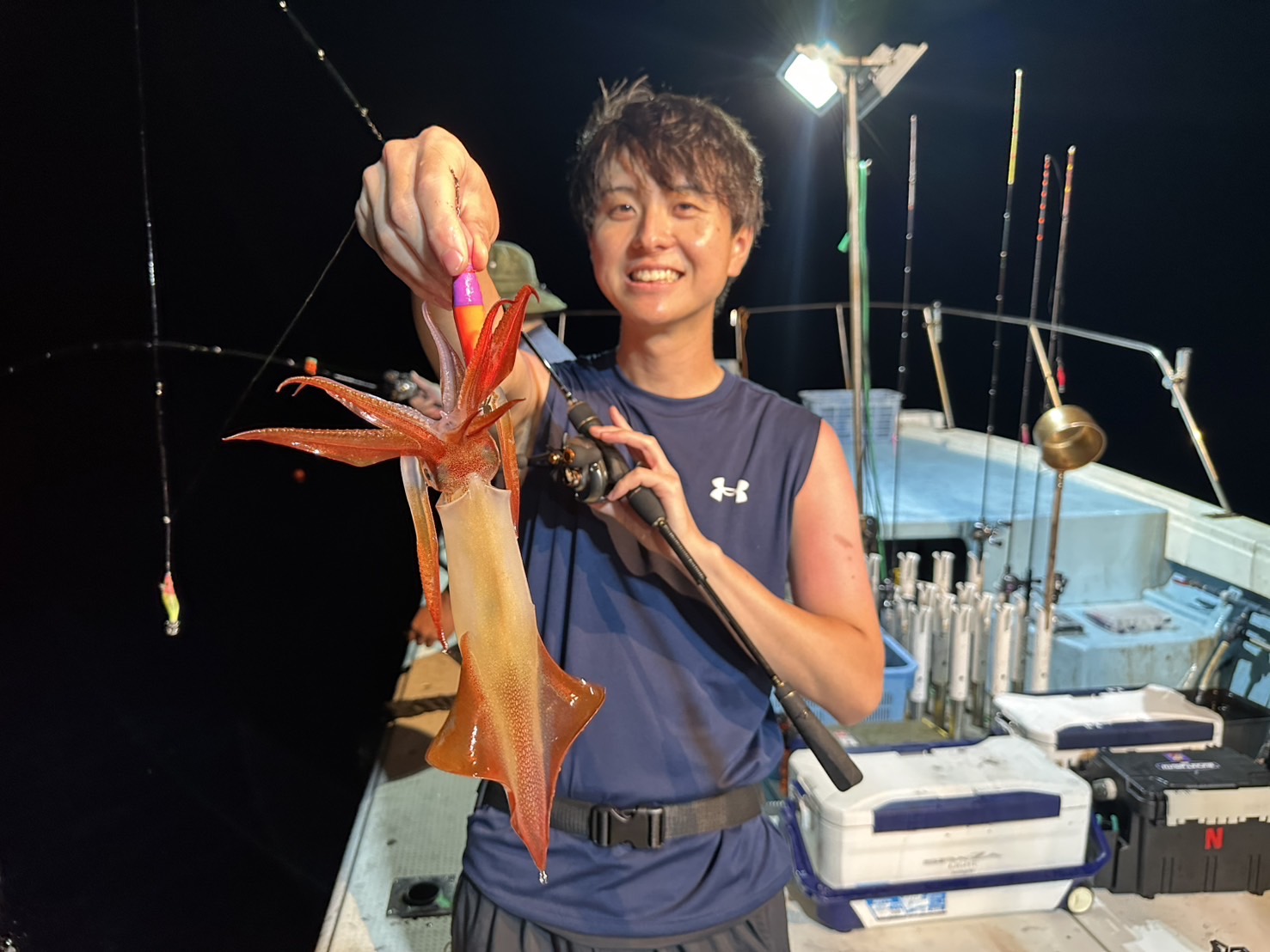 今回は三吉丸さんにお世話になり、夏のイカメタルへ!ポイントは50〜70mの深場でしたが、灯りを焚いてからは20m前後の浅棚が中心!
