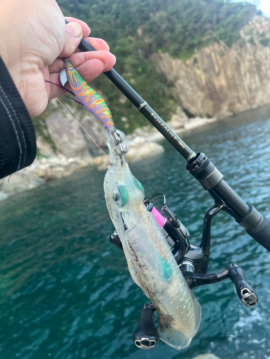 今回メジャークラフトさんの新製品、餌木蔵シュリンプを使用させていただき、アオリイカを狙いました。フォールがキレイ✨海水の透明度も高く、アオリイカ丸見え!みなさんいっぱい釣ってました!(私以外)小型メインでしたが、放送される頃にはおそらくサイズも数も増えてるはず!小さいアオリイカいっぱいいました!