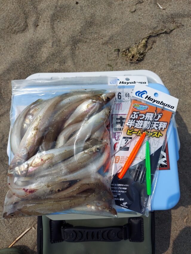 サーフは釣り人でいっぱいでしたが、なんとか空いている場所を見つけて釣りスタート😄