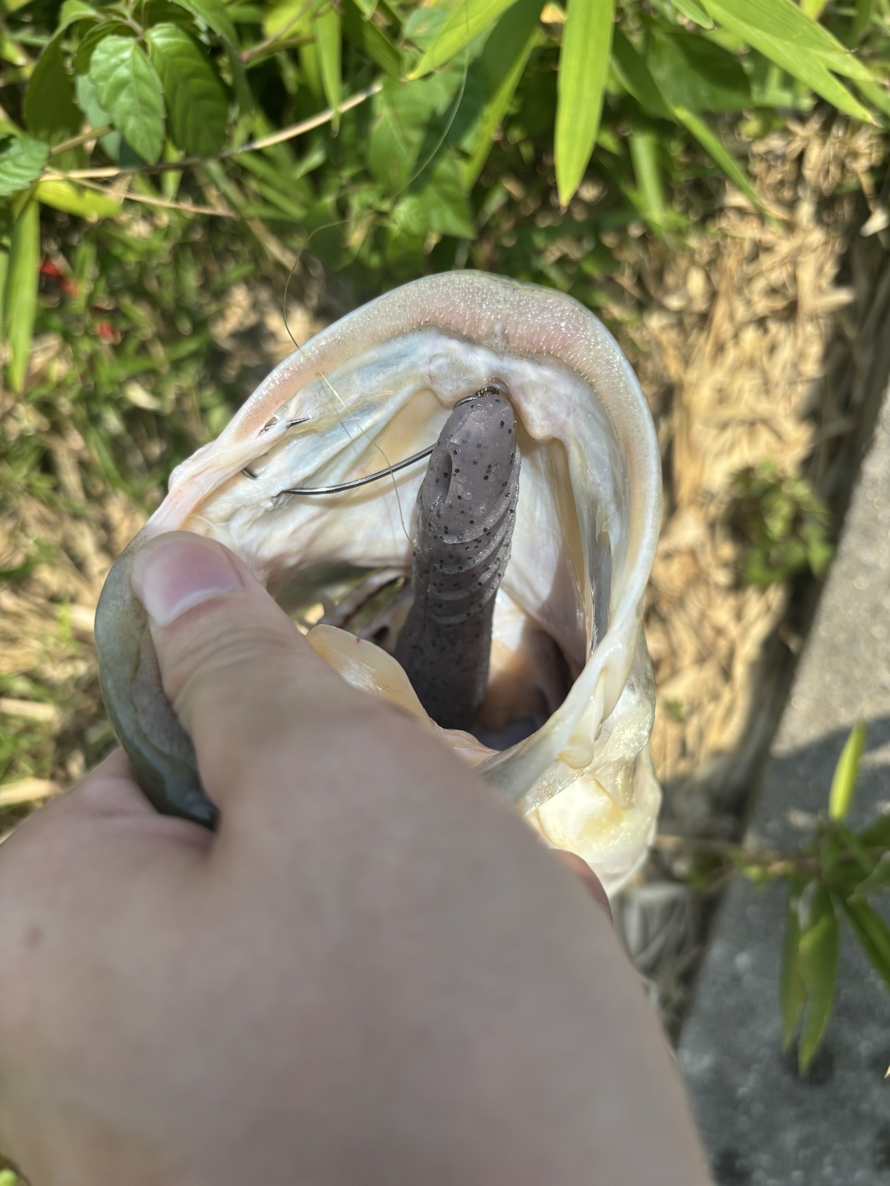 休日の午前中に空きがあったので近くの野池にバス釣りに行って来ました。狙いたかったポイントが減水でほぼ無くなっていましたがブルフラット3inのネイルリグを入れると一撃で小バスヒット!しかしポイントが小さく連発しない。カバースキャット4inに変えて遠くのカバーまで遠投。一投目は軽くバックラッシュしたので直しているとラインが走る!慌てて回収するも既に根に巻かれてラインブレイク。まあまあデカかったなあ。その後もキャストが上手く決まるとすぐにバイトで50㎝あるなしと明らかに50upなバスを連続でキャッチ!その後30㎝程のバスを追加しましたが、11時頃になるとさすがに暑すぎるのかパタリと反応が無くなってしまいました。