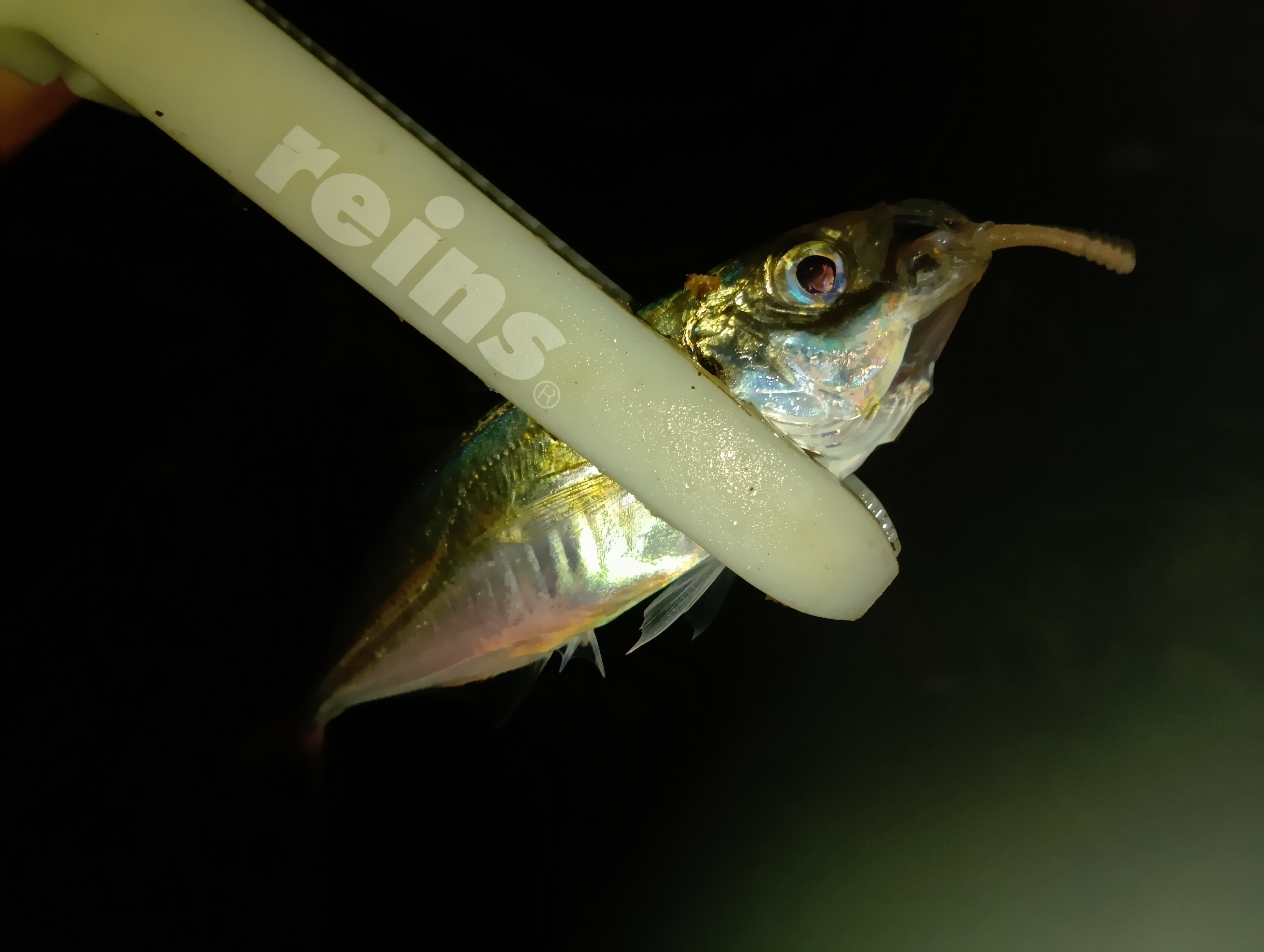 割と濁っていたので、クリア系よりもグローが入った不透明系カラーが良い反応でした。魚が小さいとさらにテクニカルになって、これはこれで楽しいです!!