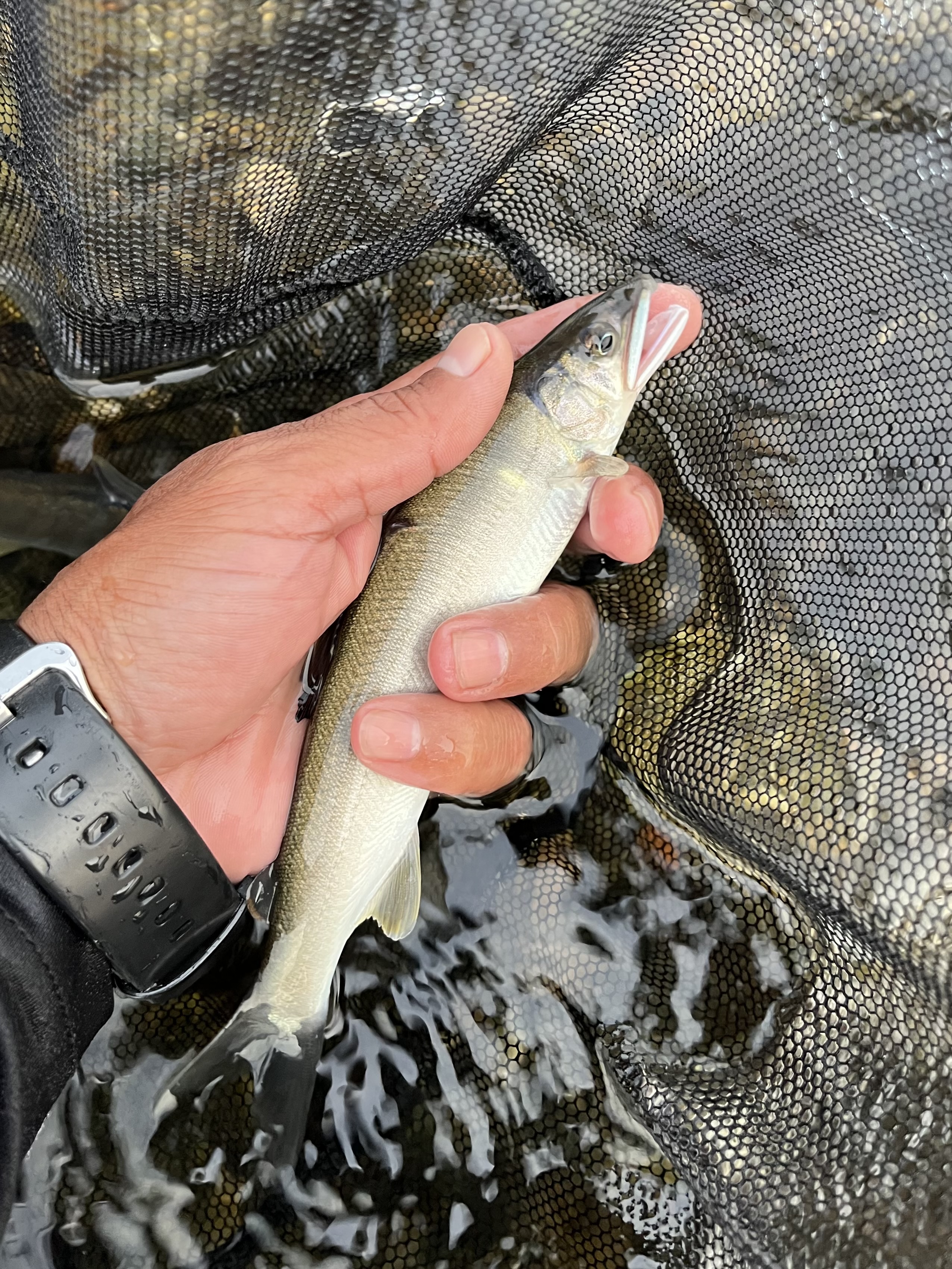 少しずつ釣り下りながら良さそうな所を狙っているとポツポツ掛かるもバラしも多くなかなか数も伸びず…