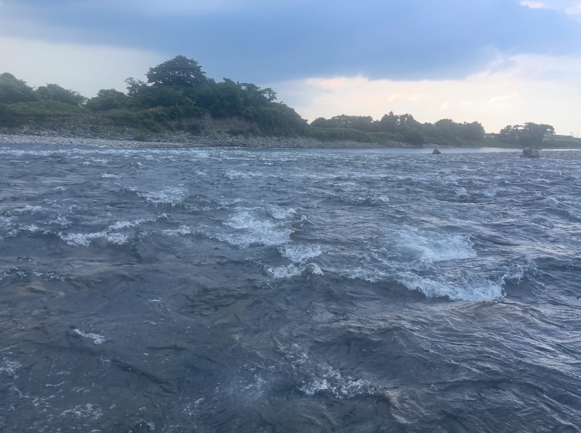 2日目は昨日の反省から朝から釣れそうな新保大橋上流の安村の瀬に入川!入れ掛かる場面もあり最高に楽しめました!8時〜15時で53匹でした!瀬肩からスタートしますが、昨日の鮎の保管方法が悪かったのか色が変わり1時間掛からない。唯一の白い鮎を使うと一発で掛かりました!オトリが変わったら一気に掛かり出す!人も多いので、自由に出来ませんが瀬のヘチで掛かり瀬尻に近づくにつれ、ペースアップ!休憩無しで15時まで楽しみ疲れたので15時に休憩し再開しようと川に入り直したら雷で強制終了でした!あと2時間やれれば自己記録更新できるかと思いましたが早上がりしました!