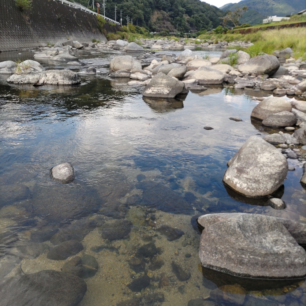 雨が降らない暑い日が毎日続き川は渇水状態になり釣りにくい状態です。川をよ~く見ると群れ鮎が見え、石に付いている鮎も見えます。何とか誘いを入れて付き鮎を狙いながら群れ鮎が掛かればラッキーと考えながら釣り開始です。