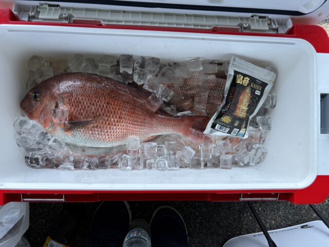 最終真鯛7枚で終了です。使用した餌は爆釣真鯛、カイザー、オキアミ、活きアジです。