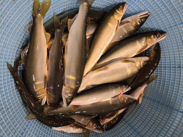 オトリを購入し朝8時に郡上大和地区に入河!今年はサイズが小さいと言われているので調査に行ってきました。川を覗いてみるとあちらこちらで鮎がキラキラ苔を食す姿が見えました。早速オトリを泳がすと30秒程でカツーン!ちっさ!掛かった鮎を泳がすとまたすぐにカツーン!今度はオトリにならないサイズ。そんな彼らと2時間程遊びシビレを切らして美並へ移動。渇水のわりには石が綺麗で押しの強い所へオトリを弱らせないようゆっくり入れ10分程すると先程の引きとは明らかに違う引き!慎重にやり取りをしタモに入れると23㌢程の立派な鮎。結局夕方まで遊ばせてもらいました。美並おすすめです。