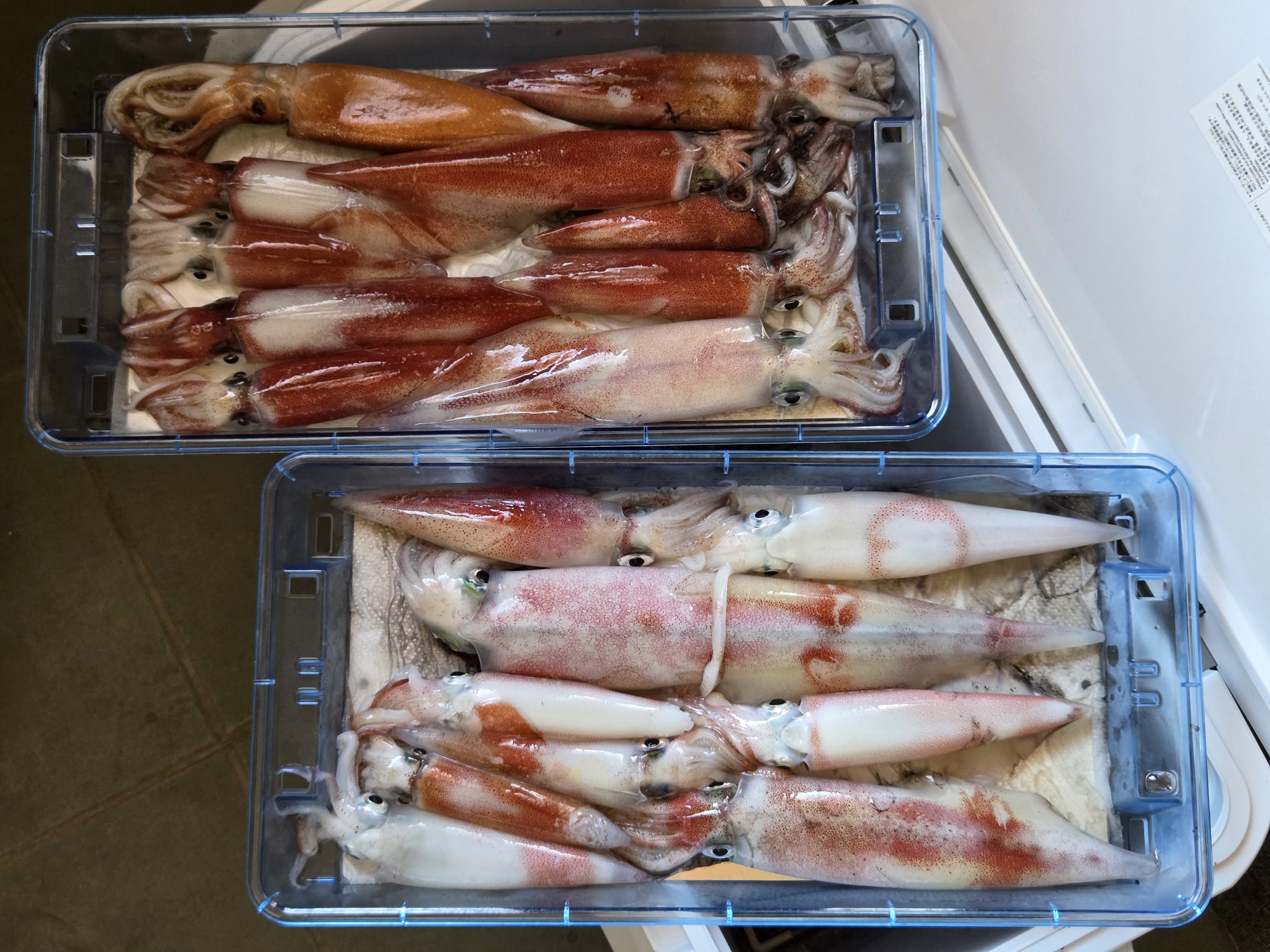 今回は、友人がイカメタルロッドを新調したので墨付けに福井県茱崎港の「ディープオーシャン様のブラック号にお世話になり行って来ました。(本当は自分が行きたかった!)結果は、無事に墨付け完了(^o^)いつもは、港から10分~15分位の水深40mくらいですが、今回はなんと水深98mのポイントでスタート!なんと幸先良くボトム付近でしかも1投目でファーストヒットで良型をゲット出来ました!その後船長から60m位に反応あり、無理してボトム狙って魚に強奪されると逆に魚が浮いてきてしまいイカが釣れなくなるので60mから上を狙ってとアナウンスがあり60m~40mを優しい誘いで狙って行きラッシュはありませんでしたがポツポツ釣れましたが、アタリの出方は抑え込むのではなく穂先を持ち上げるアタリガ多くよそ見をしていて見落としたアタリもありました。(反省!!)