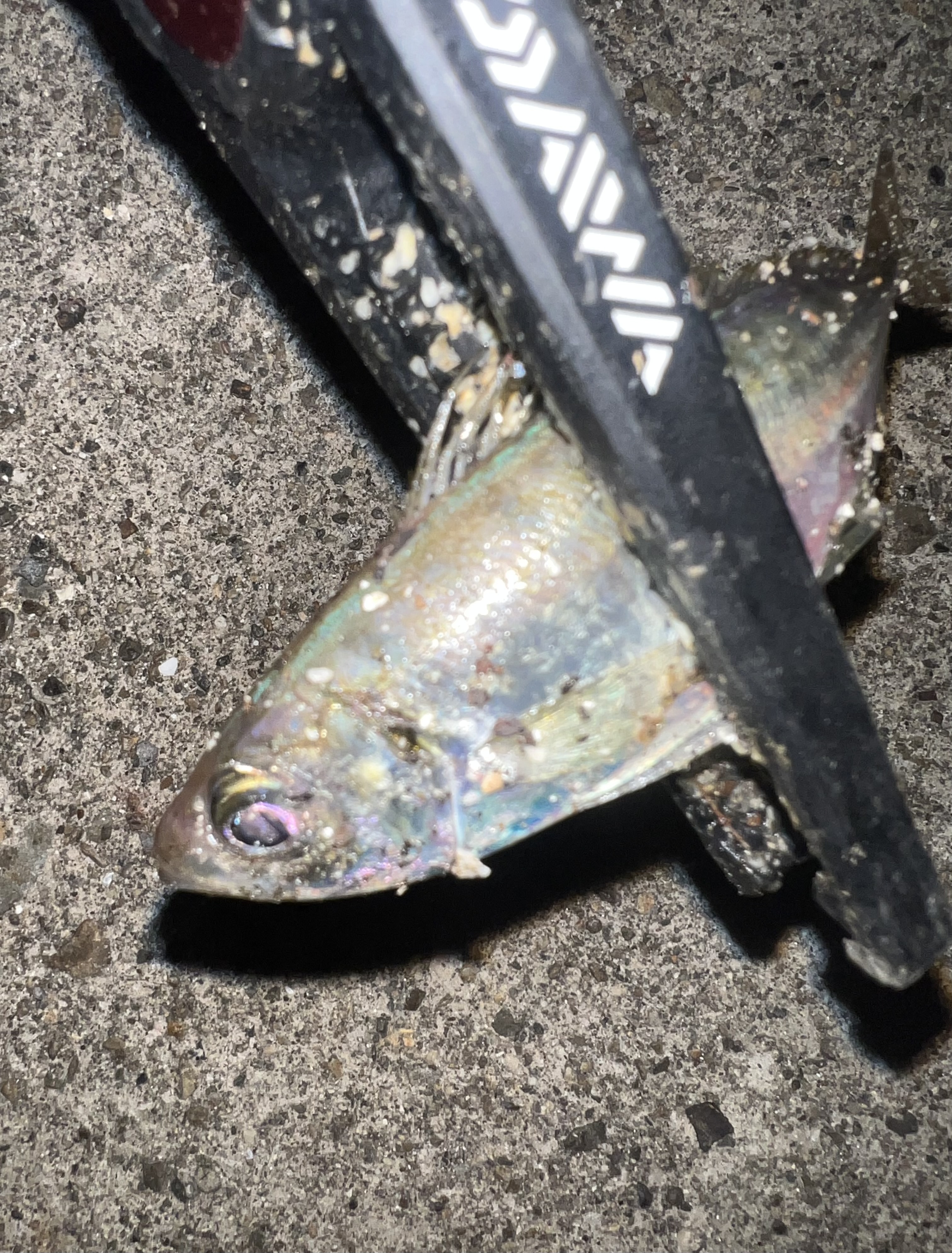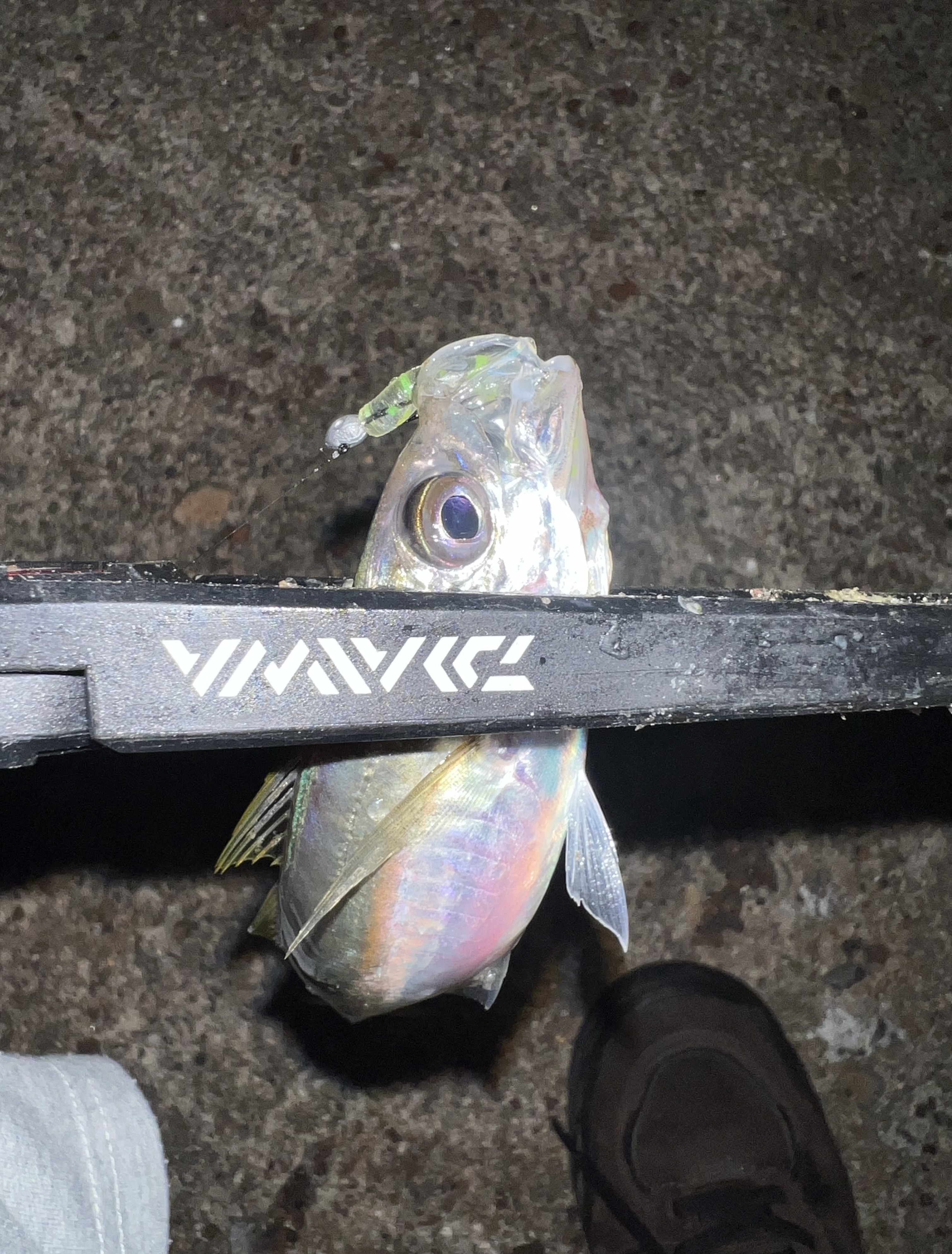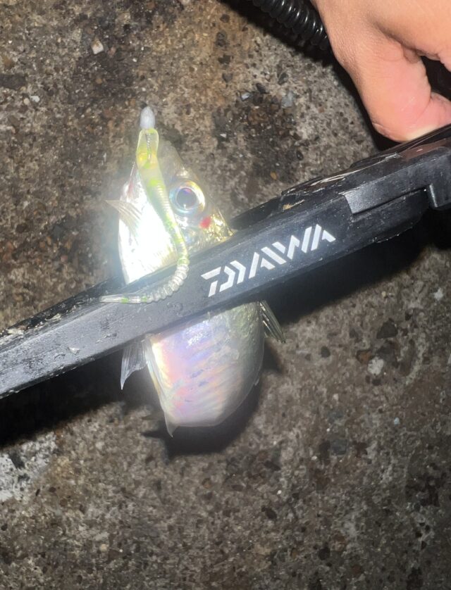 この日は1週間ぶりに時間ができたので釣りリハビリがてらアジングに行って来ました。いつものポイントにつくと何かがぴちゃぴちゃ。しかしアタリはなくよく見るとイワシ?の群れでした。ポイントを移動しレベロク様の豆アジヘッド0.4gを使用しワームにレインズ様のチビアジアダーを使用。するとアタリが出始めますが食い込みが浅い・・・そこでワームをレインズ様 のチビキャロスワンプの必殺フラッシュチャートKRに変更すると一気に連発!しかしロッドの性質もあり辺りは多いもののバラシも多く結局1時間で11匹という結果に落ち着きました。今年の知多アジはゲーム性が強く楽しめますので是非行ってみてはいかがですか?