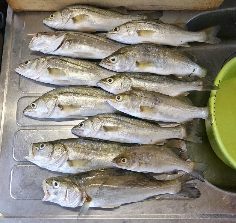 メチャクチャ暑い北陸へ行って来ました。ただ風が吹くと体感温度は一気に下がるので釣りにくいですが風に期待!仕事終わりから走り1ヶ所目 ルアーから投げるのですが反応はしますが乗って来ず エサに替えて投げると食いました!ネット入れて確保するのですがネットから暴れて見事にフックも外れ逃げて行きました。次に掛けた魚は重くてイイサイズだったのですがバレる 気を取り直して 次のアタリは確実に掛けて1匹目 続けて2匹目を確保 レンジを合わせる様に気を使うと3匹目 落ちパクで4匹目 遠投して5匹目 掛け損ないもありましたが6匹目 そして小さいですがヒラセイゴを確保で7匹目 8-9匹と確保したところでアタリが途絶えたので場所移動、次の場所で投げるのですが無反応なのでウエイトを落として投げにくいですがレンジを上げ丁寧に引くと食いました!10匹目 右へ投げ引くラインをずらして巻き11匹目 岸寄りへ投げて12匹目で魚が居なくなり移動 次の場所ではルアーには反応しますがエサでは反応せず確保ならずラストの移動をしますが反応出ず一晩目夜明けにて終了です。