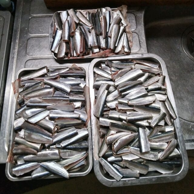 何とか414匹確保できました。潮の動きが悪く苦労しましたが何とか釣れました、ママカリサビキ7号を半分にして使用です。
