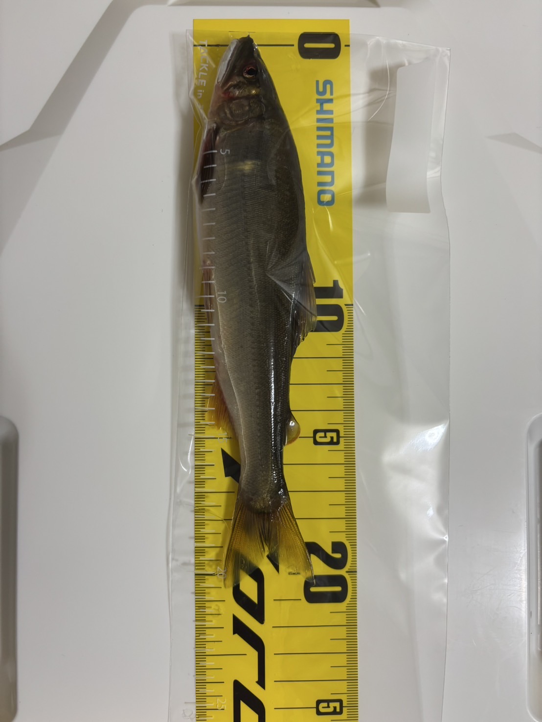 今回も板取川で鮎釣りをしてきました!タモと引き舟を新調してのチャレンジです!最初のポイントではトロ場ではかかるものの少し小さめだったので瀬で泳がせてみるといい感じの泳ぎをしたので行くかなー?と思った瞬間に目印が走ります。ゲットしてみると少し大きめ。使おうか迷いましたが舟に仕舞い、次のポイントへ移動します。人多いかな?と思いましたが、空いていたのでおやつにスイカを食べて熱中症予防。まずは、少し水深のあるトロ場を泳がせてみると調子よく2匹ゲット。次は瀬を少しやってみるとまたゲット。一度離れたトロ場でやってみると反応なし。次はオトリが泳げるか泳げないかギリギリの水溜まりでまさかのヒット!それをオトリにして瀬釣り開始!この時点で17時。そこから4匹ぐらい入れ掛りでタイムアウト!!15センチ〜20センチの合計で12匹の釣果となりました!鮎1年生、初めてつ抜けができました!今回新調した道具はダイワのスペシャルのタモとシマノのアドバンスパワー2です。どちらも私には非常に使いやすかったのでまたブログなどでご紹介できればと思います。