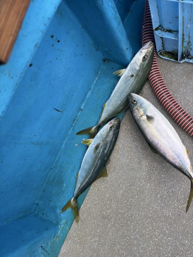 事前情報ではベイトはイワシがメインとの事でファンツールの「最強!ライトタックル落とし込み」を使用しました。サワラも上がっているようなのでハリス12号の仕掛けを使用します。ベイトの移動が早くなかなかエサを掛けられない。移動しながらベイトを探し、仕掛けを8号ハリスに変更。ベイトが付くようになるとツバスがヒット!隣ではサワラもキャッチ!そうこうしていると私の仕掛けにツバスが三連ヒット!このミラクルには笑わせてもらいました。結果はツバス5匹でした。