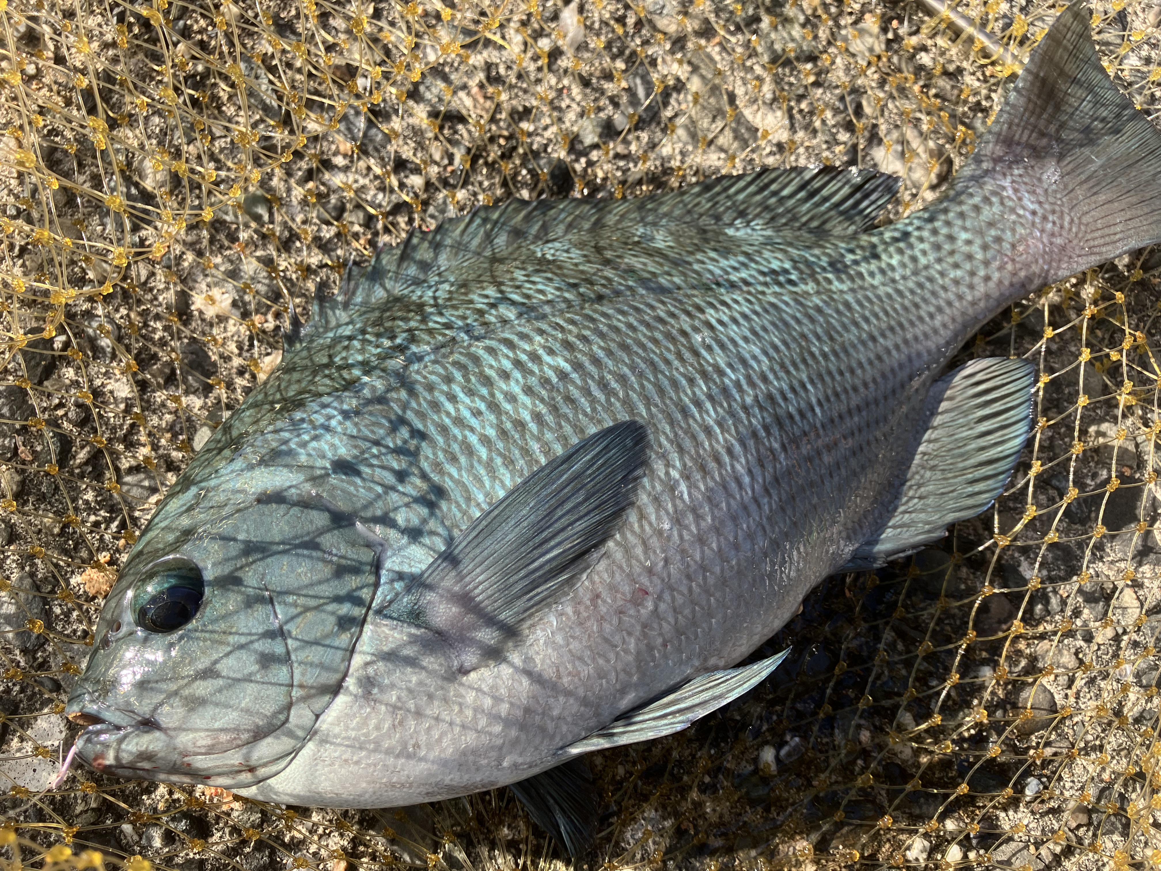 ドラグがジジジーっと出るので青物⁈とタモを準備するとまさかの良型グレ‼︎‼︎