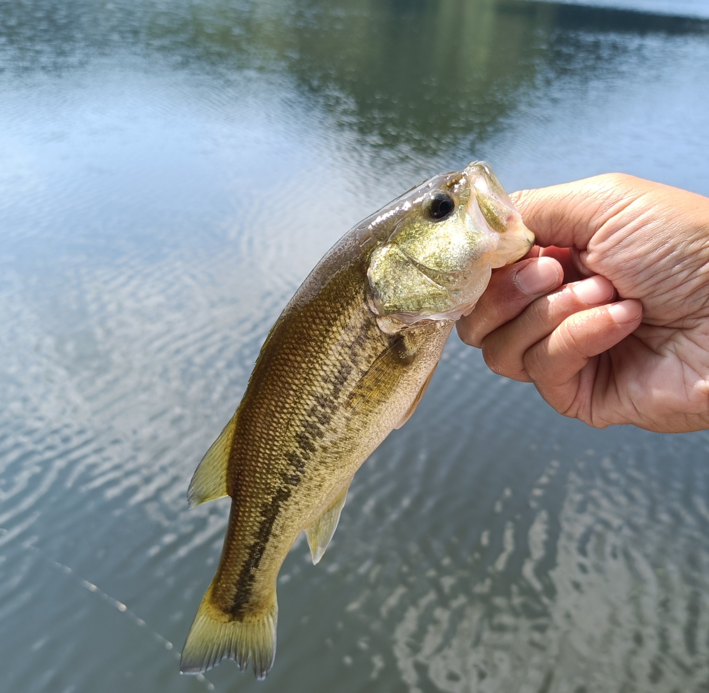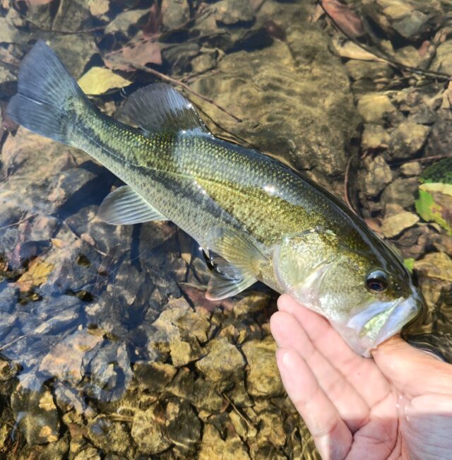 大渇水の五桂池に行って来ました!10時〜12時半の短時間勝負!まだまだ暑く気温も36℃<( ̄︶ ̄)>この暑さの日中は流石に暑い!水分補給忘れずに>.<少しでもカゲを求めて堰堤の岩盤ポイントへ!岸際をビッグベイト&フリーリグで狙うがノーバイト…。魚の顔が見たく小さいですがその中でも少しマシなサイズの見えバス発見(^^)フリックシェイク3.8inワッキーで2匹GET(。•̀ᴗ-)✧12時半に終了しました!大渇水で1周歩いて回れそうです(*´ω`*)