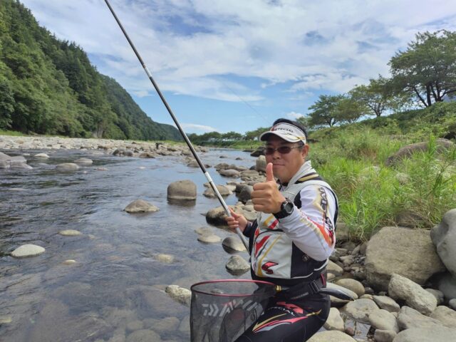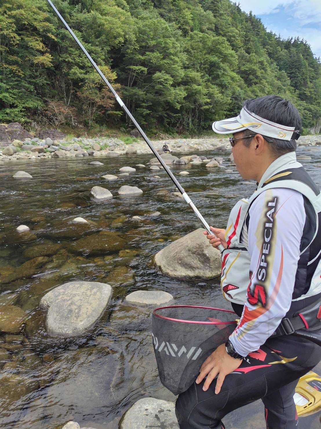 久しぶりに郡上 白鳥で鮎釣りをしました。今年はサイズが小さくなかなか通うことはありませんでしたが一宮店鈴木名人に誘われ行ってきました。石色は良くいかにも掛かりそうです。開始5分で1匹目。その10分後に2匹目とボチボチ掛かるので瀬に突入♪しかし掛からない!ん~何かがおかしい!下に入った鈴木氏は入れ掛かりモード。こりゃまたバカにされる!と必死になって釣りますが午前中4匹…お昼をはさみ今度は私が下へ。いかにも釣れそうな所へオトリを送り込むと秒殺‼そこから怒涛の入れ掛かり♪チビも混じりますがMAX24㎝程。メタル0.05号だとドンブると思いハナカンも通さず舟へ。夕方になりペースも落ちてきた所で終了。最後数を数えている時あのハナカン通してない鮎はヌルヌルで手から上手に逃げていきました(笑)