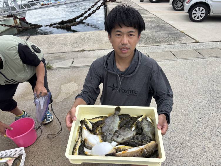 ポイントに付き1投目から穂先に違和感が、すかさず合わせるとカワハギヒット!その後もコンスタントに釣れ続け最終カワハギフグ27匹の爆釣!良型も混じり楽しめました!