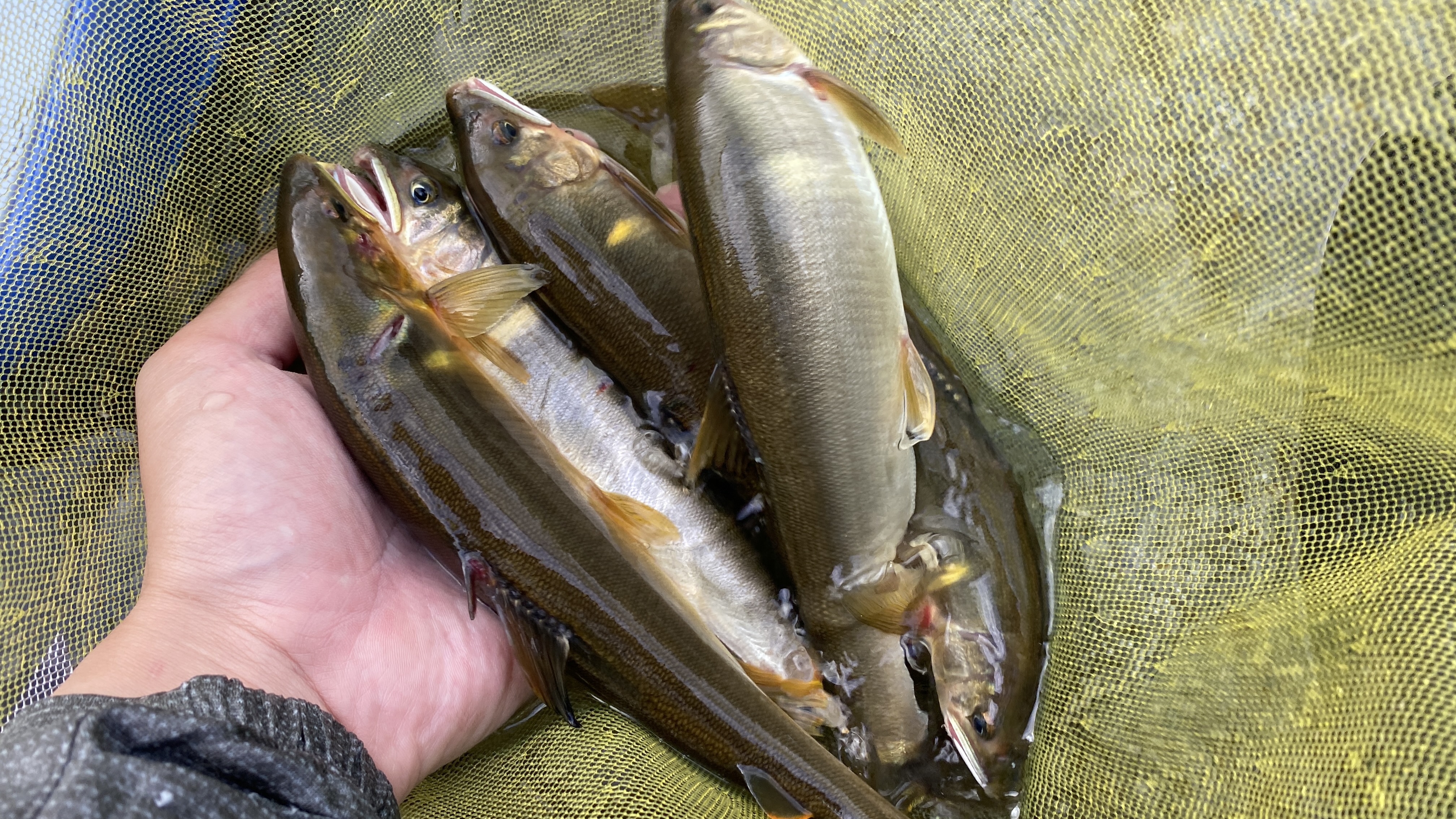 しかし、心臓付近に掛かってたり、ピクリとも動かない鮎で養殖オトリのまま続行。キビシイ!