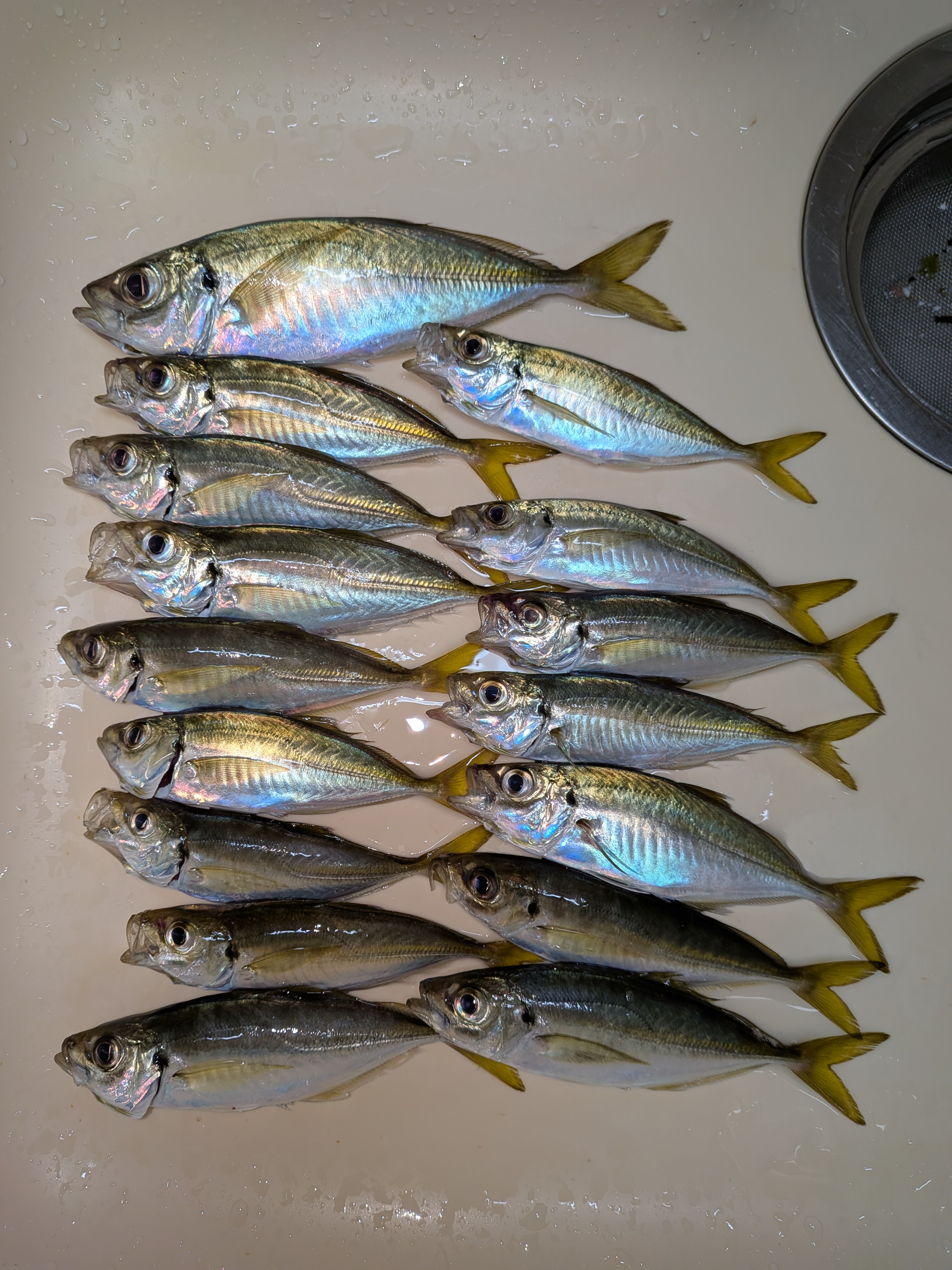 メアジだろうと思って寄せてくるとちょっといいサイズのアジ、そしてアワセが遅れた時にありがちのポロリ。