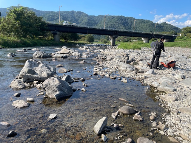 またまた牧田川に鮎友釣りに行って来ました。現地で桑名の梅田店長と合流、今回は8時半に入川でした。やっぱり朝はすぐにオトリ交換に成功、3連チャンで掛りますがその後が連発とはいかず…水温も徐々に上昇、昼頃から濁りが出始め益々釣りにくい状況でした。15時前まで頑張りましたが14鮎掛けて納竿、23cmが4匹混じり干物にしても食べ応えありで満足です!