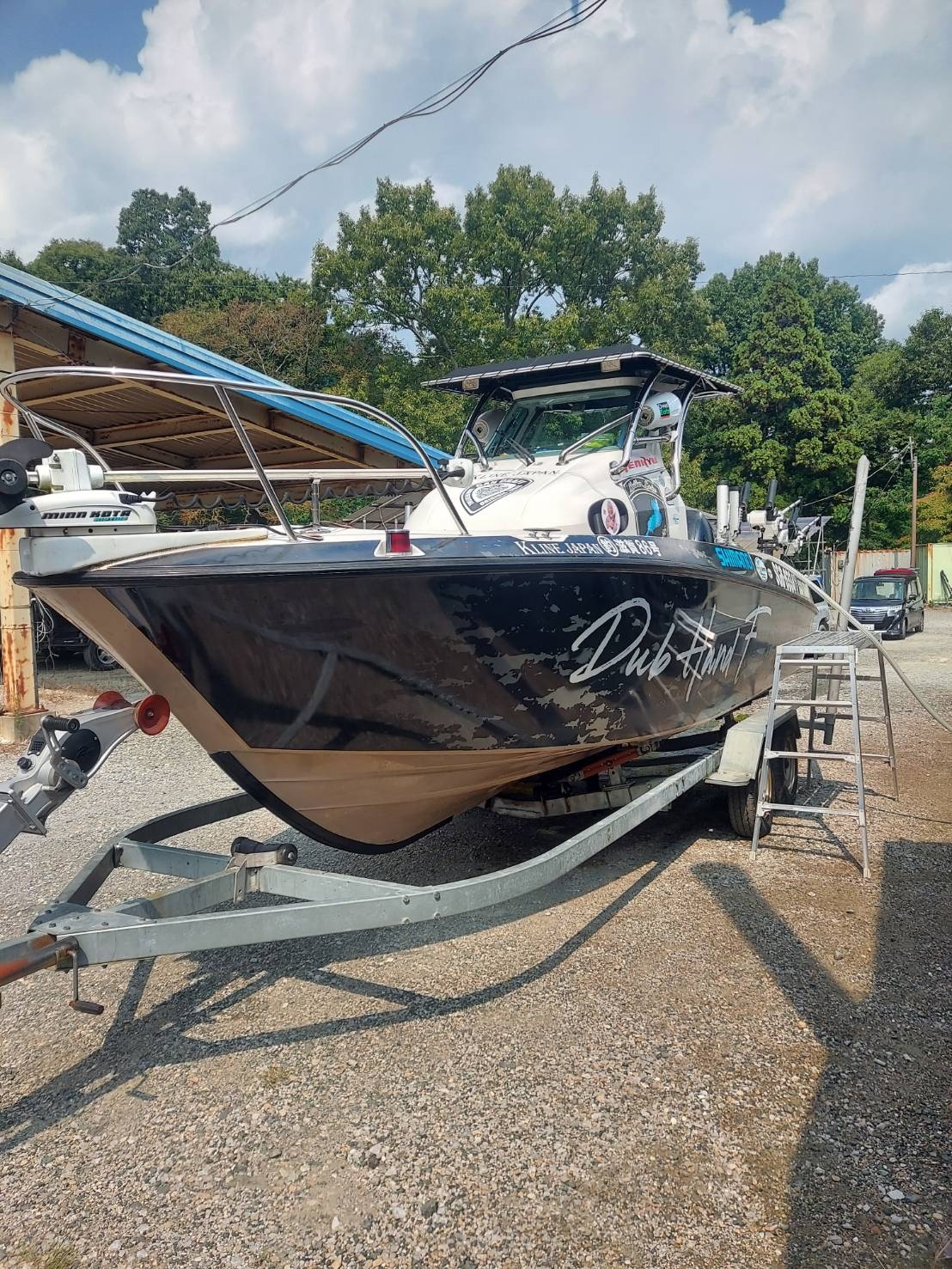朝イチ船長に挨拶をしてトレーラーに乗ったままの船に乗船、そのままスロープまで牽引されて出発です。
