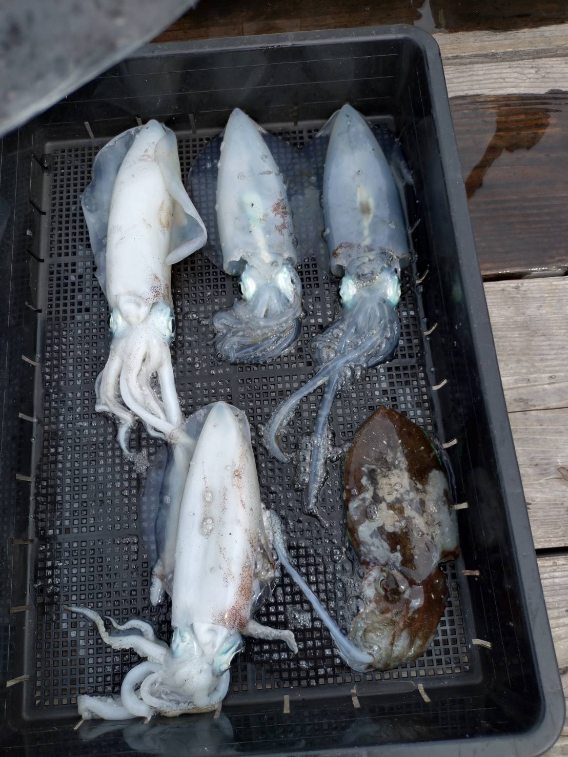 その後は船内でポツポツ拾っていくような感じで、私はしゃくり合わせで3杯追加。最後にしっかり穂先を見て釣りたいと思い、盛山チーフにアドバイスを戴き、最後の1杯はしっかり穂先の変化を見て掛けることが出来ました。初めて挑戦しましたが、おそらく、手元に伝わらないアタリは逃してしまっていることが多かったと思います…。次回はしっかり穂先の変化を見て釣れるように再挑戦したいと思います。