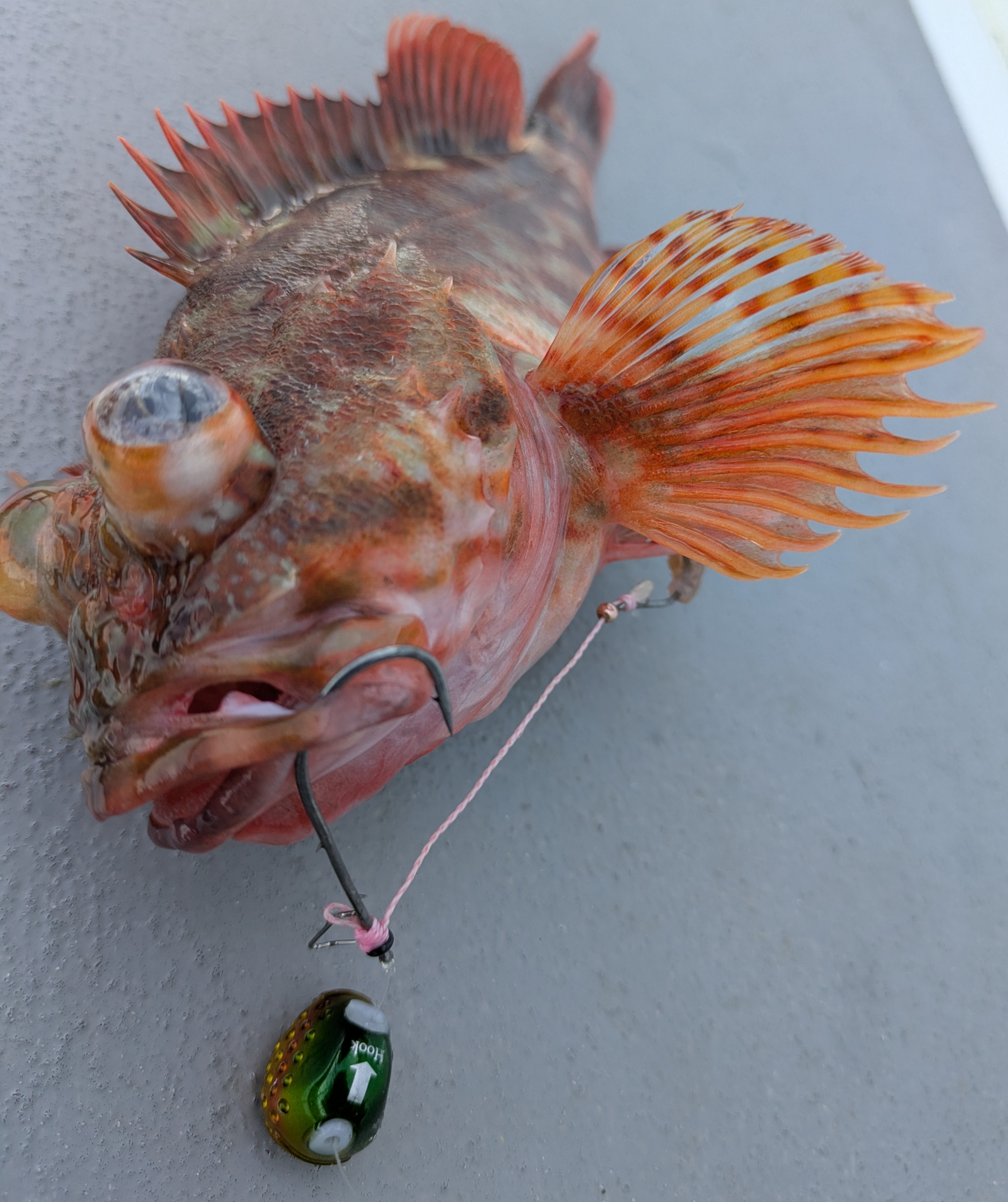 使用したテンヤは8〜12号。ラインはできればPE0.6号がオススメ(潮流が複雑な時がある為)リーダーは3号。参考にして下さい。
