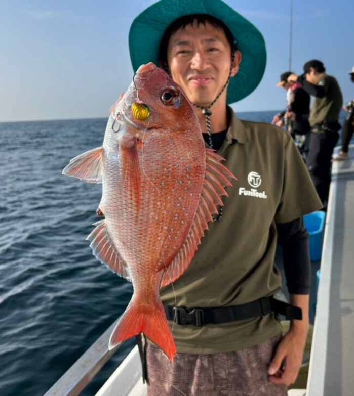 今回、がまかつ様のひとつテンヤマダイ実釣会に参加させていただきました。桜幻鯛テンヤX(なかなか市場にありませんよ!)を使用させていただきました。忠栄丸様も1番使いやすい!アタリを掛けれる!と絶賛のロッドです。