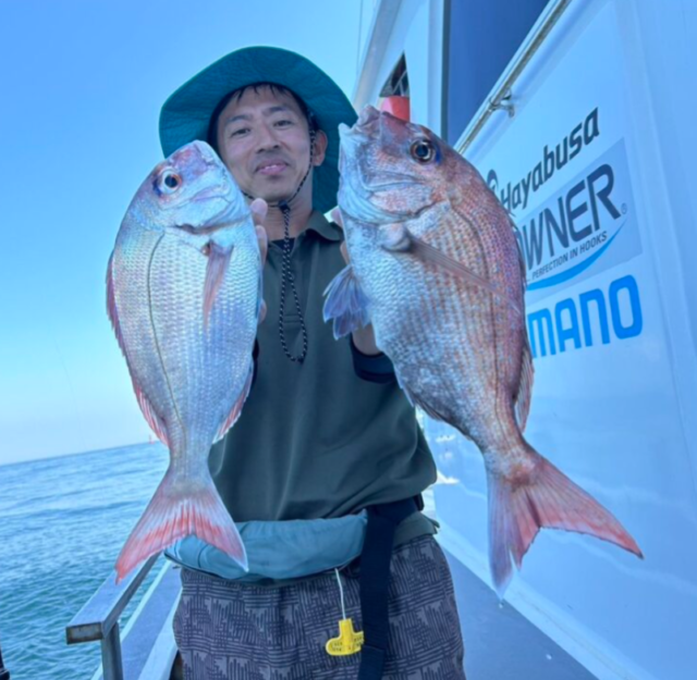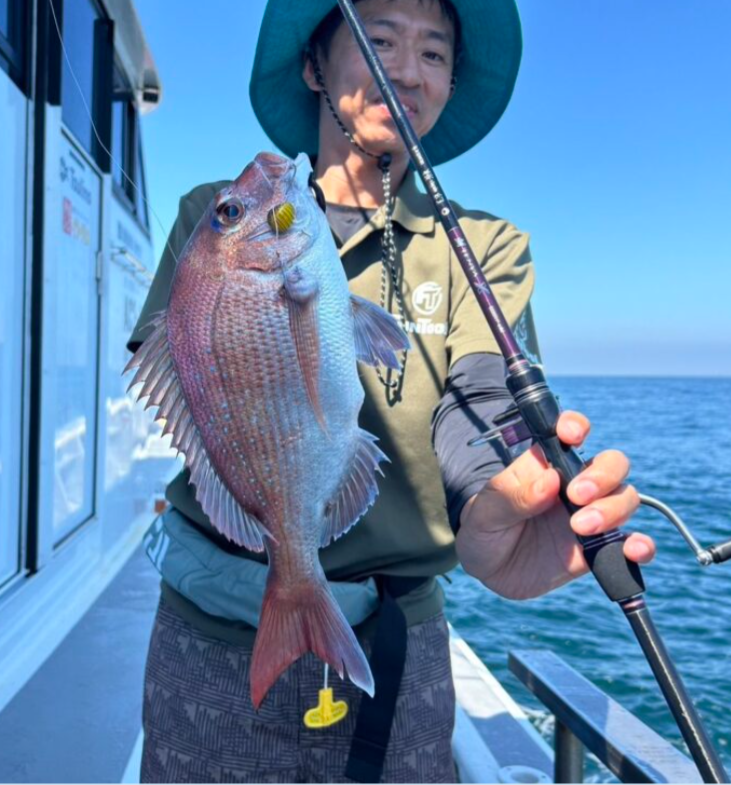 実釣スタート!とすぐにヒット!40センチ弱のマダイ✨幸先良すぎ!アタリがバンバンに伝わり掛けるだけ!な桜幻。さすがです。竿に張りがあり、アタリを弾かずしっかり掛けれる竿が理想。この後連続で3匹ゲットしました。