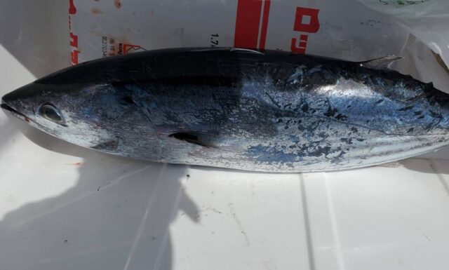 青物だけど、何か違う…。2500番のルビアスでは厳しいかと思いましたが、なんとか寄せてこれました。上がってきたのは、まさかのカツオ(笑)。