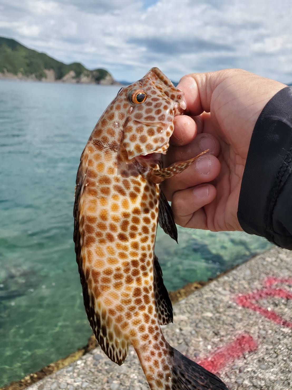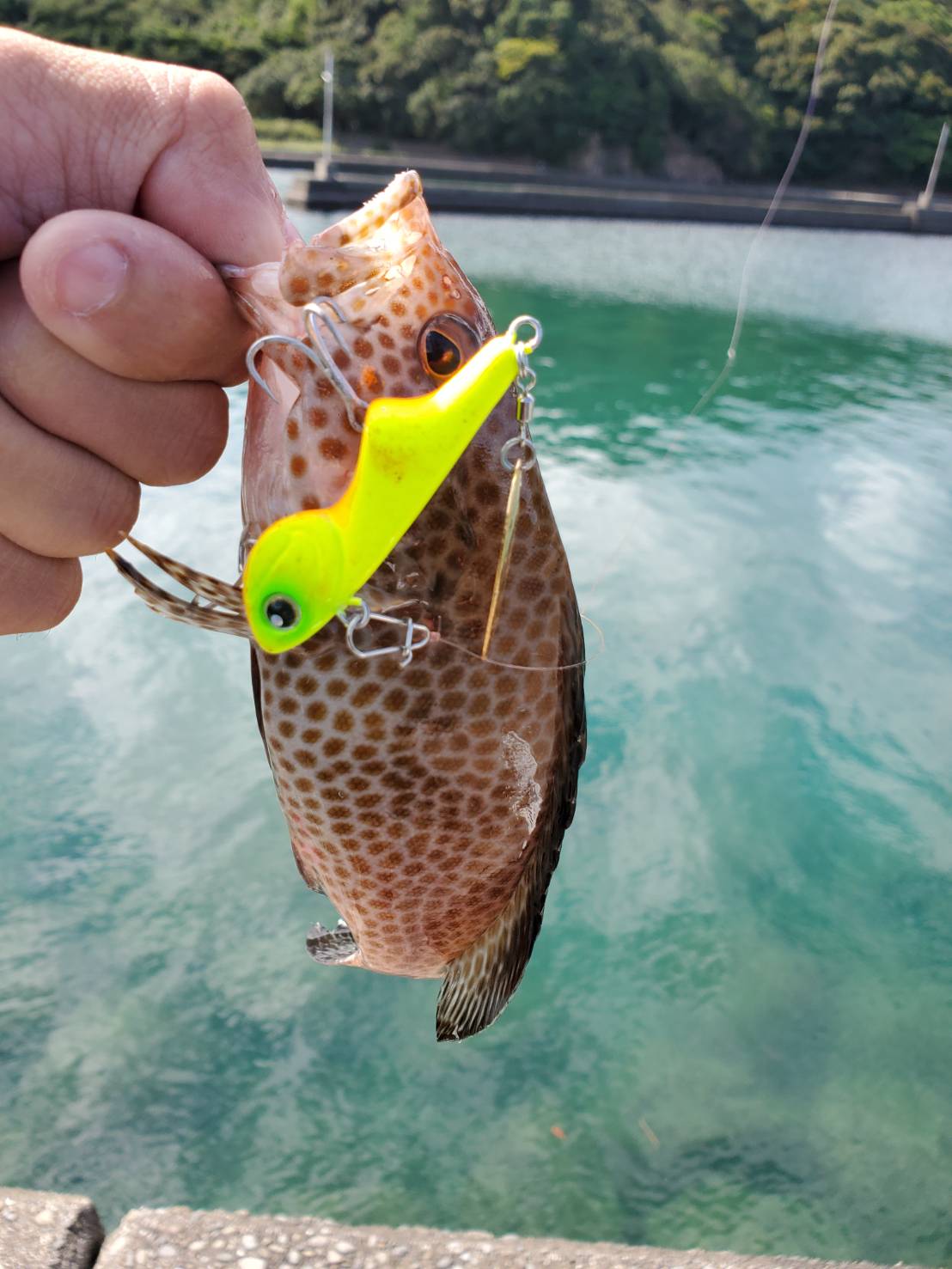 その後は底付近をゆったり巻いてくると、オオモンハタが遊んでくれました。