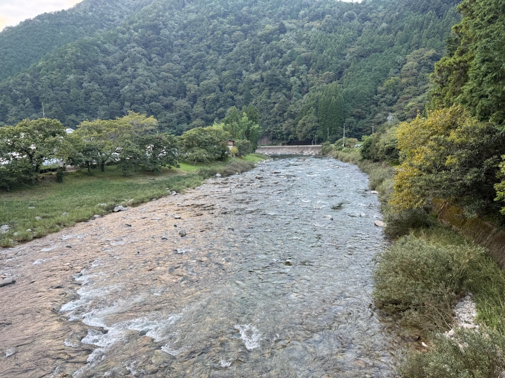 釣人は下流から中流までいらっしゃいますが、大混雑とまではない状態です。途中何度か橋から川を除きましたが、