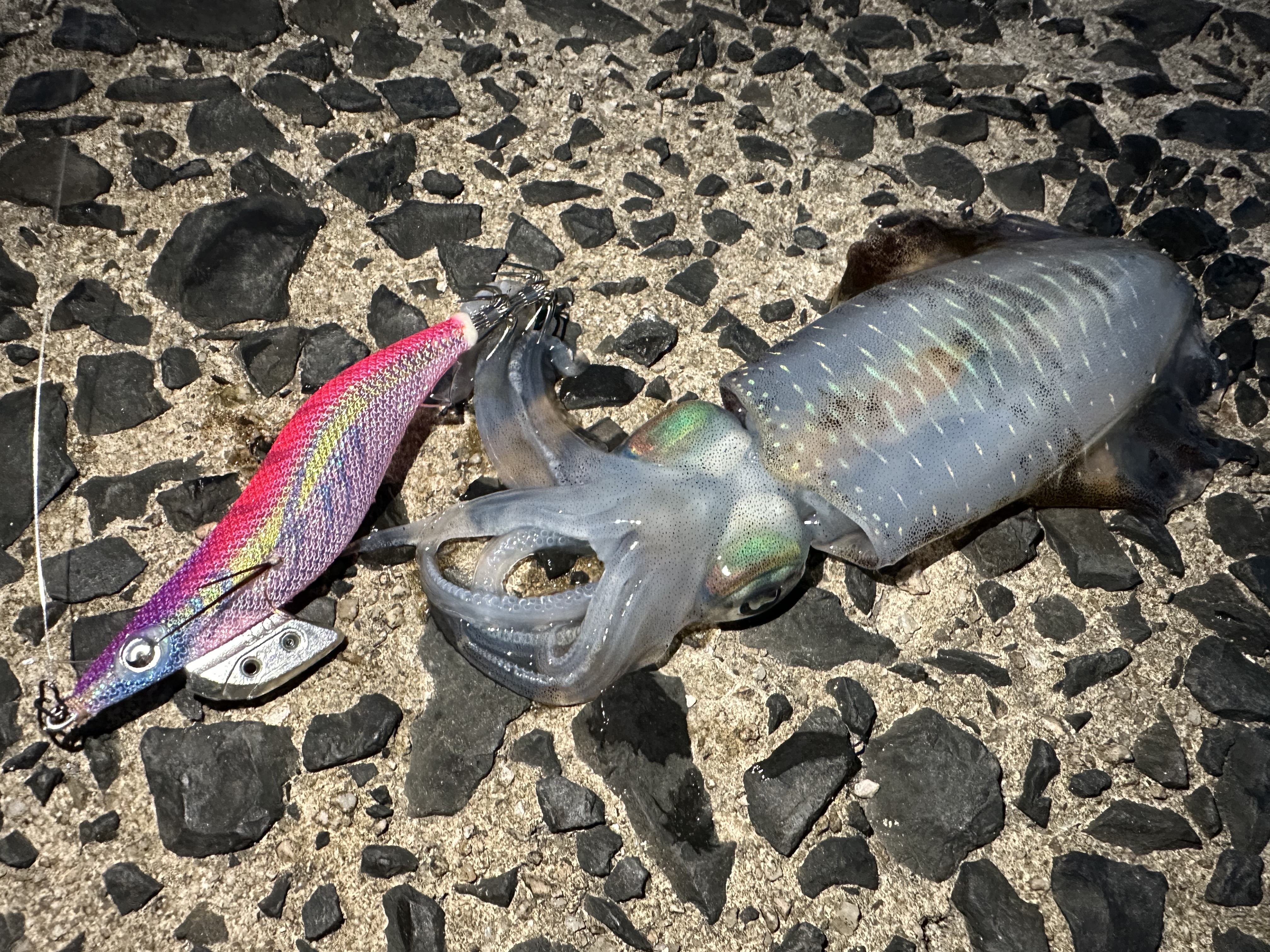 途中で豪雨もありましたが、嫁さんも友達もアオリイカ釣ってましたよ!