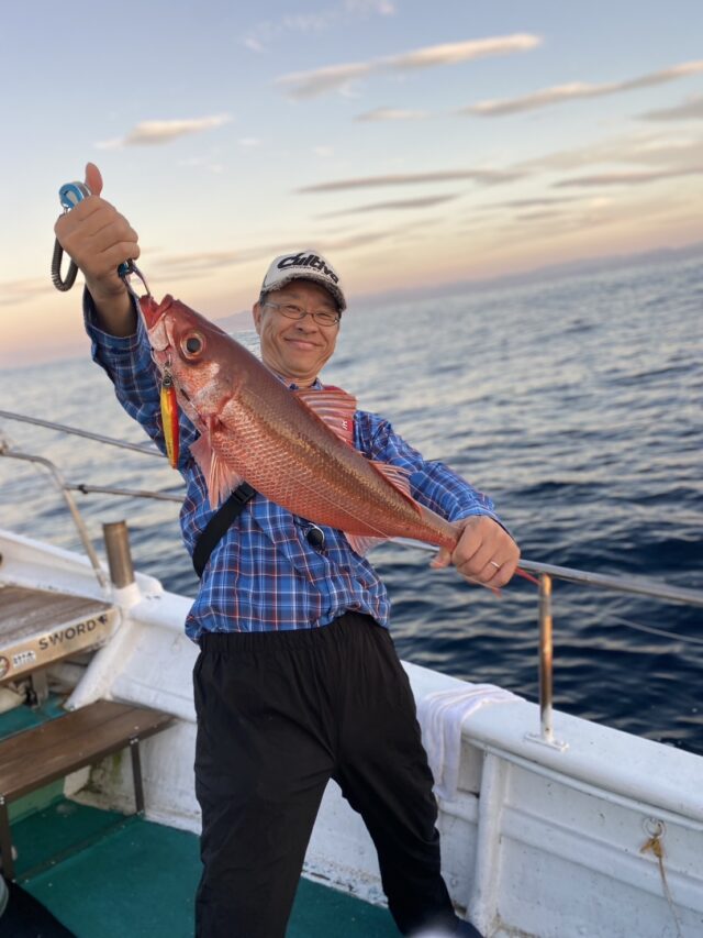 まだ薄暗い中、続いて僕が良型チカメキントキをGETすると隣の方は良型マダイ。