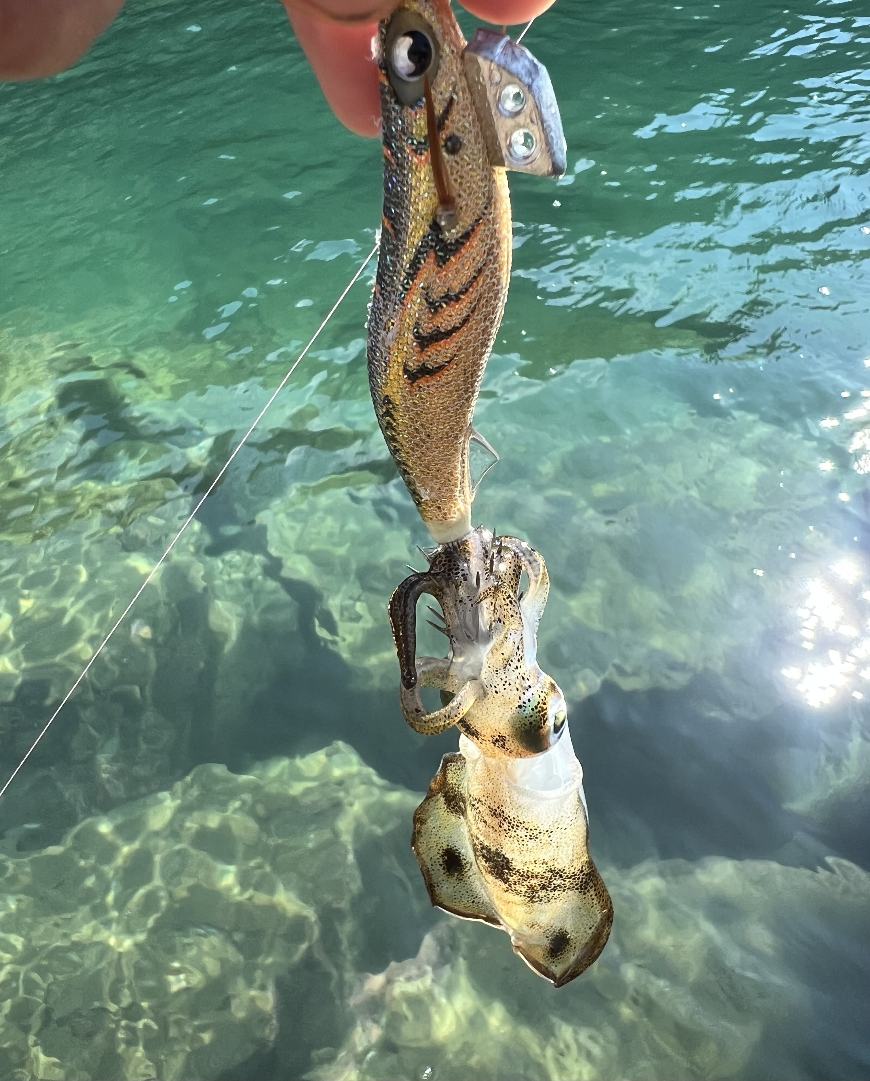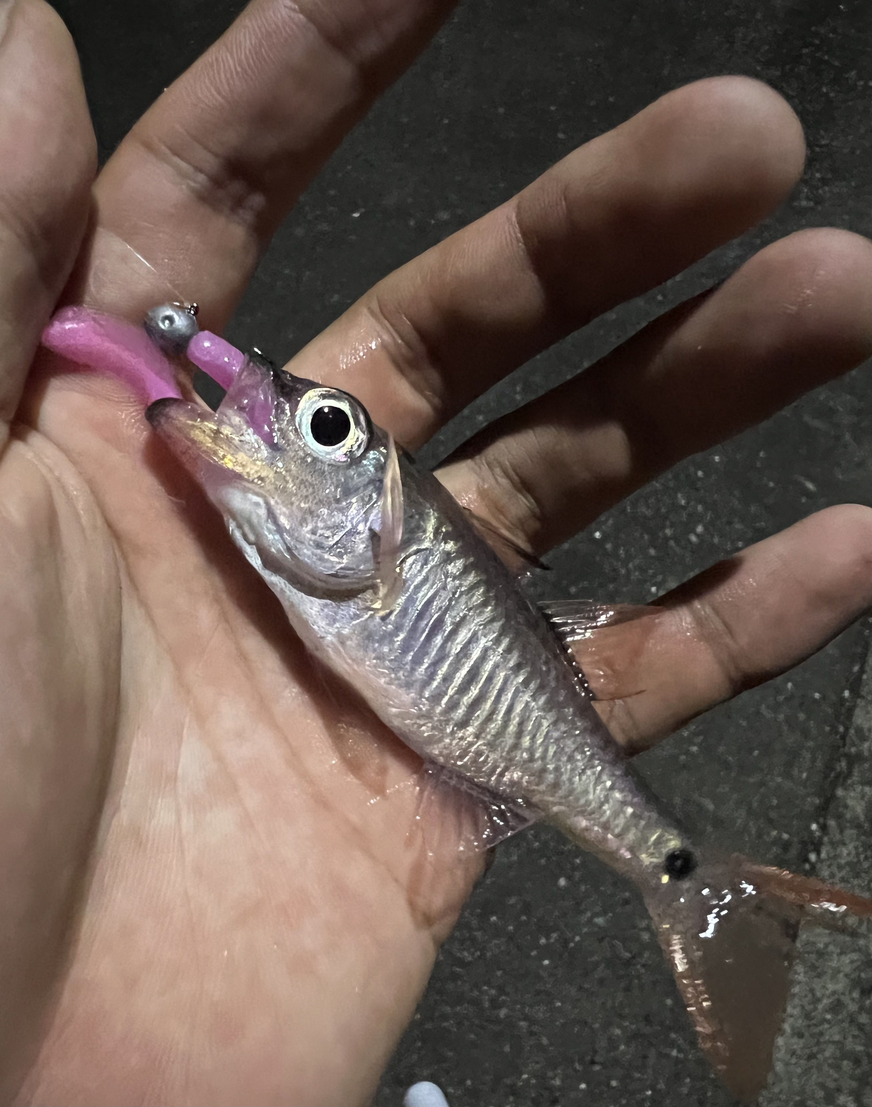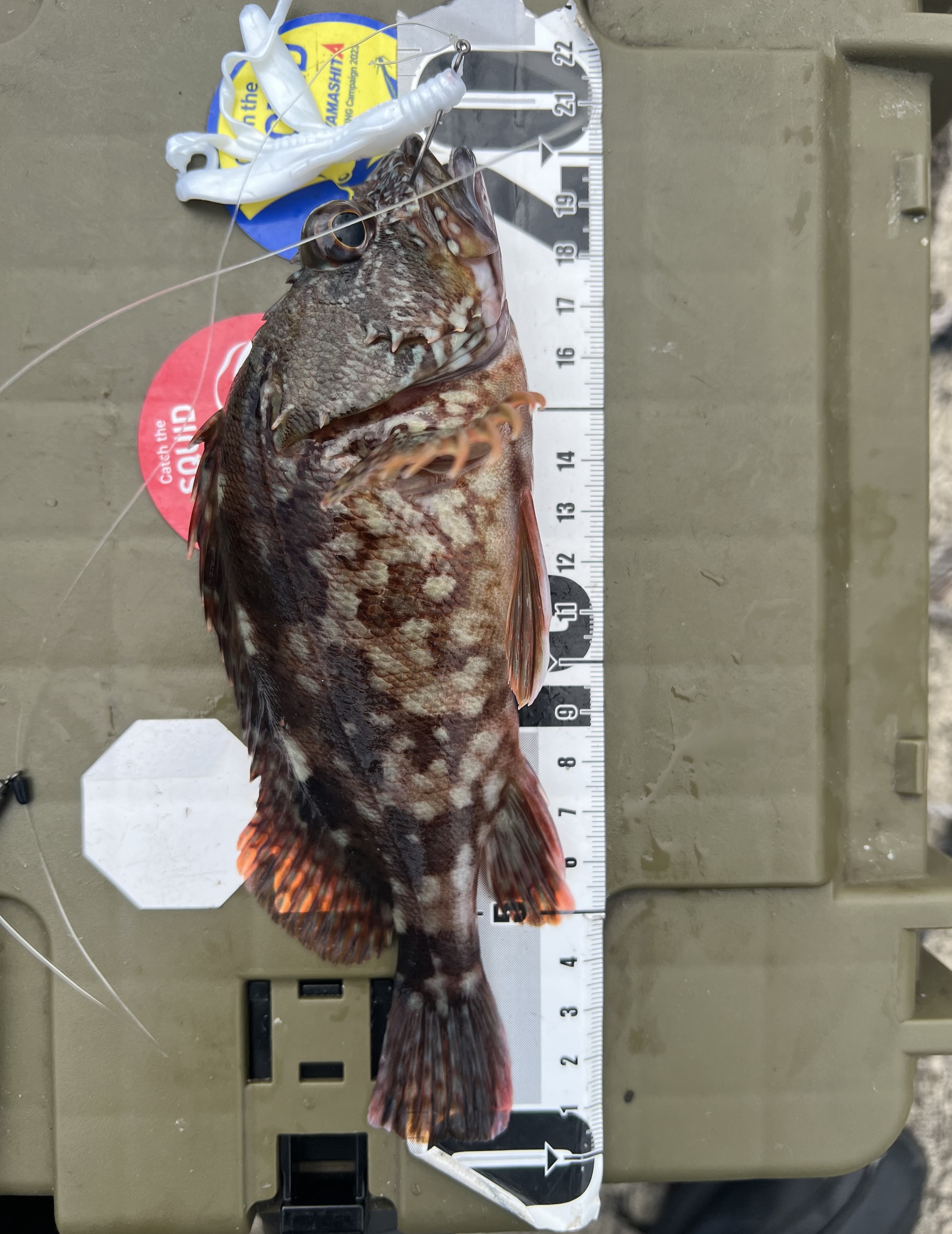 この日は紀伊長島に釣り遠征に行って来ました。朝マズメエギングから始め、ヤマシタ様のエギ王K2.5号にてヒットするも抜き上げ前にバラシ。その後はイカパンチはあるもののヒットせず。別の場所では超小型を1杯釣りました。現地の方によると1週間前に降った雨からイカが全く釣れなくなったそうです。心が折れかけたので少しだけカサゴに遊んでもらい、最後までイカは釣れなかったのでアジングにチェンジ!まずは0.7gのジグヘッドから投げるも流れがめちゃくちゃ早かったため、ダイワ様の月下美人アジングヘッドTG1.0gを使用し、リトリーブをメインに釣って行きました。濁っていたのでワームはエーテル様のプロキシマのソリッドカラーをメインに使いました。なんとか最後にアジの引きが楽しめて良かったです!
