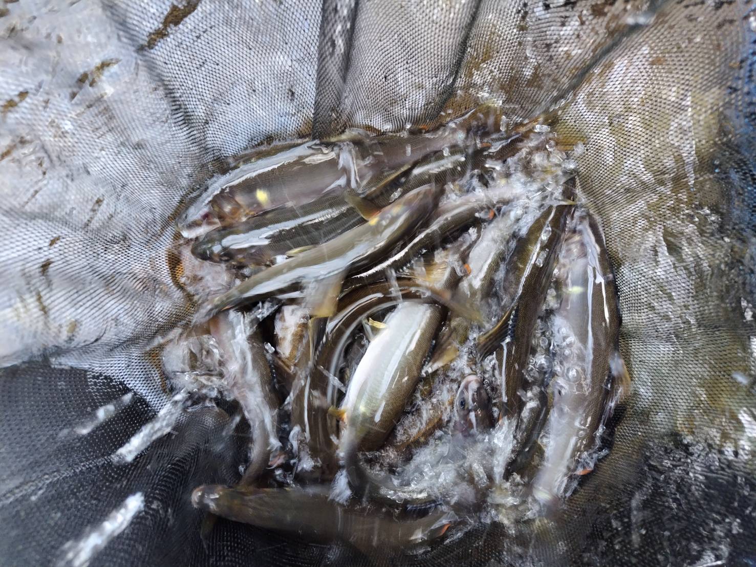 午後はそれぞれポイントを入れ替わり、阿部さんはさらに上流、日高店長は渕尻の水深に変化のあるトロ場、私は瀬肩~浅いトロ場を釣り、夕方薄暗くなるまで決勝戦は続きました(*^^)v今年鮎釣りを始めたばかりですが、一番若い選手が脚力を活かして(^O^)?25尾、一番年配者が22尾、もの凄い集中力を持ちながらも一番遠慮がちな店長は18尾という結果でした(*^_^*)季節は少しずつ移り変わっておりますネ。