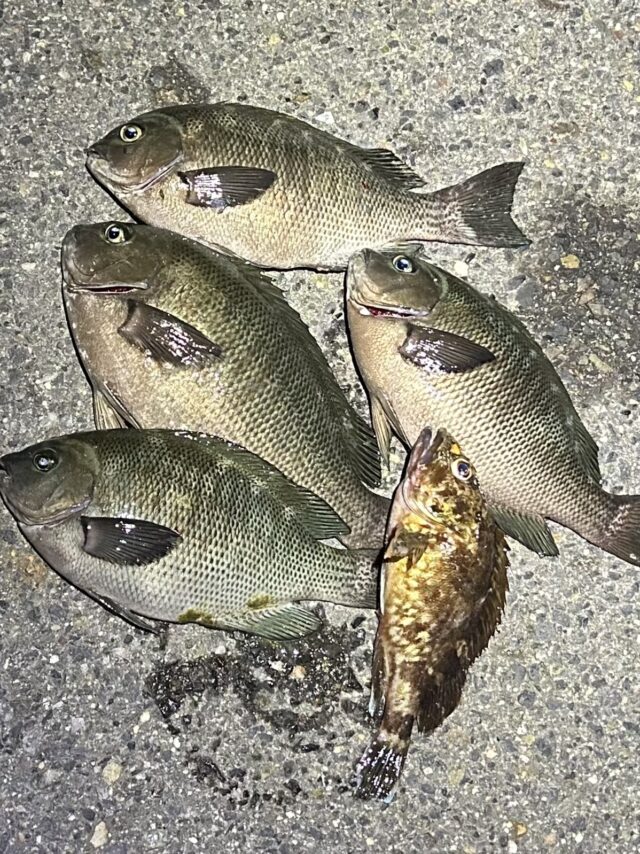 暑さも和らぎ涼しくなって来ましね、今日は日本鋼管に少し夜釣りに、2時間程電気ウキで楽しんで来ました。長潮で余り潮は良くない状況でしたが、ウキ下を下げるとガシラだったので、棚を浅くしてテトラ側を流すと、電気ウキがすーと入り込み合わすと、なかなかのサイズのグレが釣れました。撒き餌も無くゴカイの刺し餌で結構楽しめました。秋の夜長に皆さんも色々な釣り楽しんで下さい。