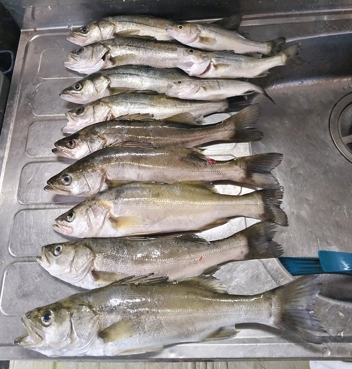 雨が酷く二晩目も同じ場所なので釣果的にはかなり厳しいと思われますが頑張って投げていきます。暗くなりかけた頃チビセイゴが釣れます。狭い場所に小型が居るので3匹釣り完全に暗くなった頃から本気モードですが雨がマジ降りになったり止んだり爆風になったりとコンディションは最悪ですが投げて行きます。シンペン小から投げていると触るので 丁寧に~ ガコン!と派手に食って来ました。しかしすぐに反応が出なくなり動きながら探っていると触って来ます。これも食わせて確保!雨風にホンロウされながらスラローム系にしてみると見事に食ってルアー丸飲み…外すのが大変、しかし後が続かず インクスルアー多用になってしまいます。それもルアーが落ちて巻き始めの1mで反応が出なければ追ってくれない 面倒な展開になり それでもセイゴが食うのでマシンガンキャスト並みに投げて何とかセイゴを追加ラスト1時間は触って来るのに乗って来ず ルアーを替えると反応すら出ないがインクスルアーに戻すと反応が出るので そろそろ終了にするか と思った頃 ガツンと掛けたのですがアワセが効きすぎた感アリアリでジャンプでド派手なバラシ、あ~ぁ アキラメかけたところで 見事にアタリをとらえラストのセイゴを確保して今回の釣行は終了です。
