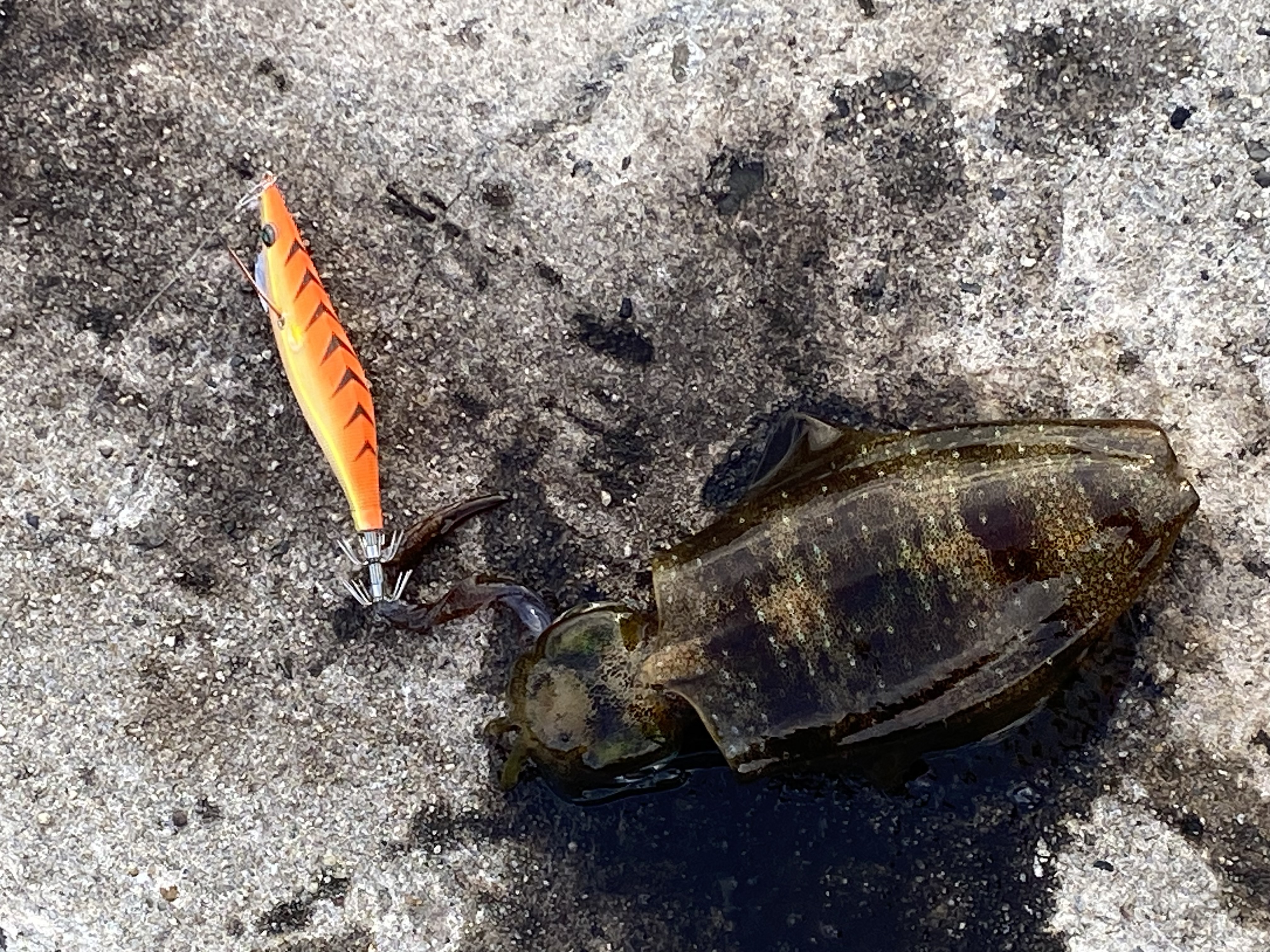 見惚れてたその時、イカがHIT!目の前で抱いてきました!手前までしっかり探ることも大切ですね!