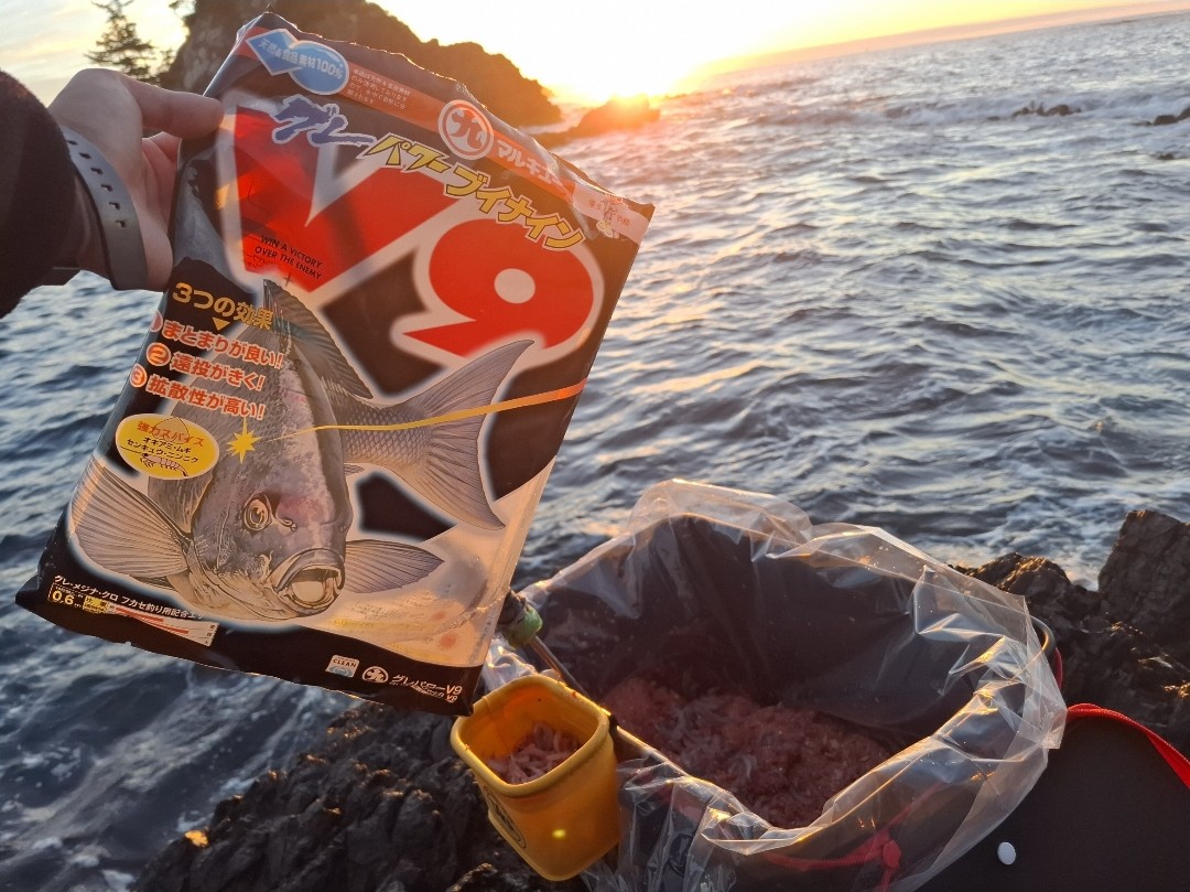 撒き餌はオキアミ3キロにV9。定番の組み合わせでやっていきます。