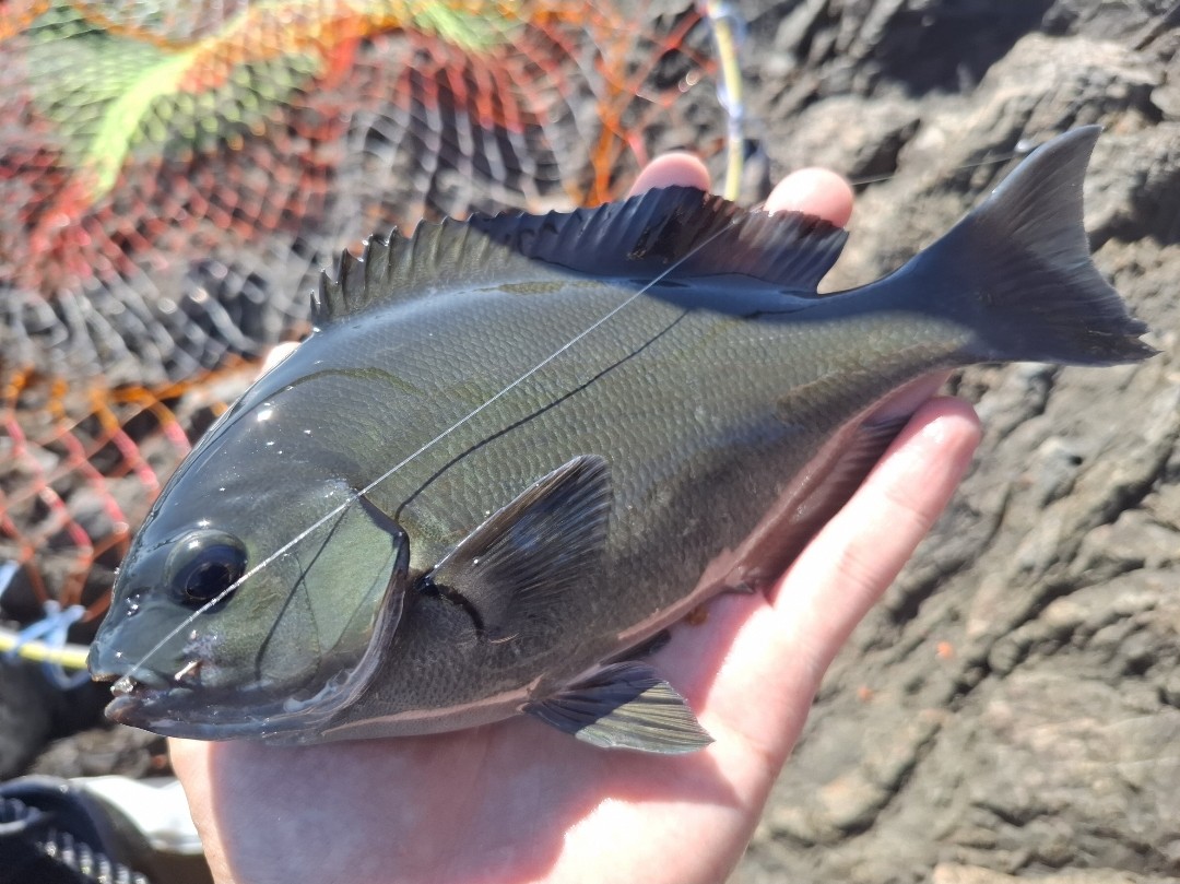 外洋側は少し波立っていたので、内向きの磯で釣りをすることにしました。