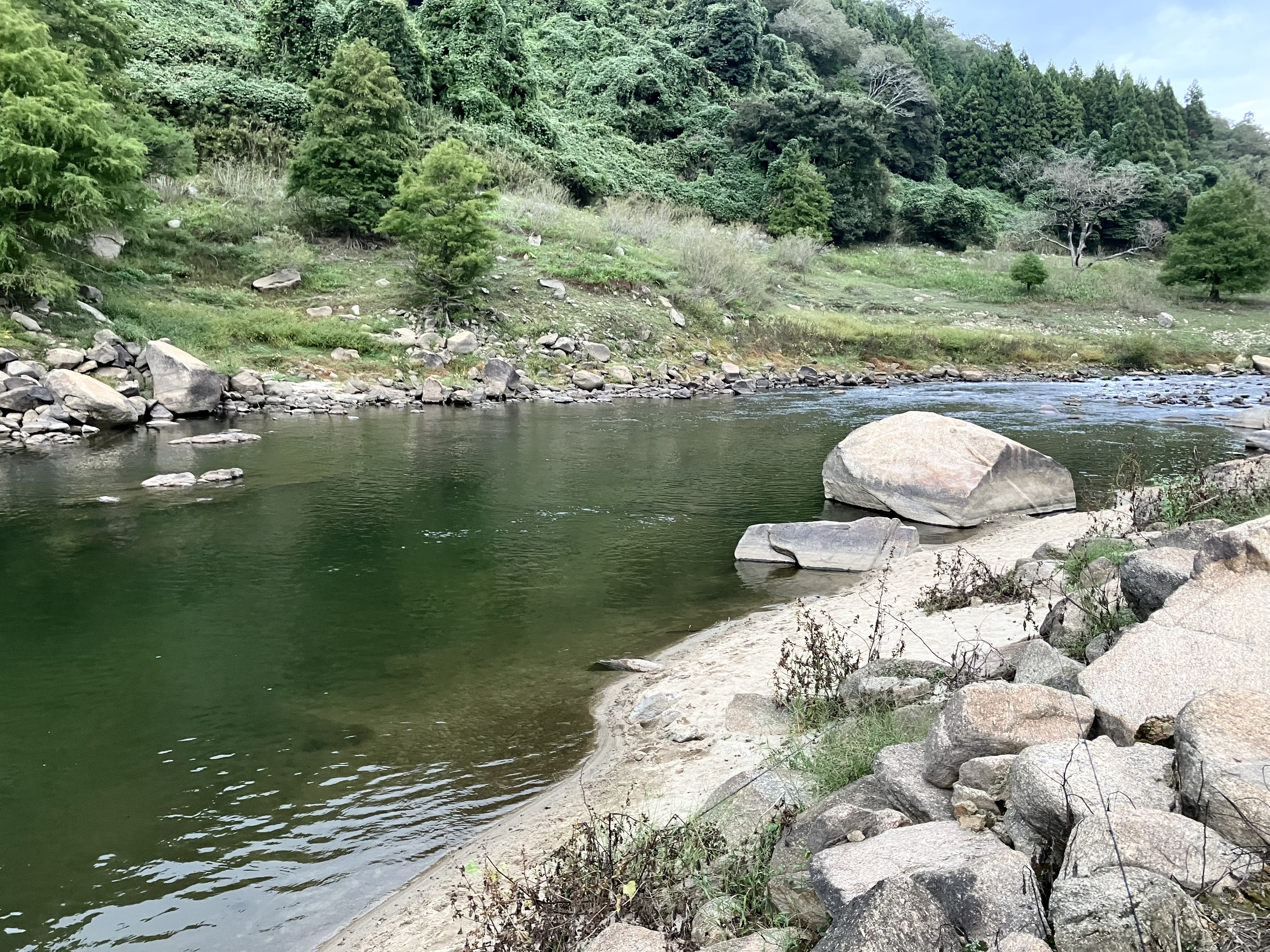 まずは遊漁券を購入し、上流攻め作戦!!本命エリアにアングラーが集結していたので、更に上流からスタート!
