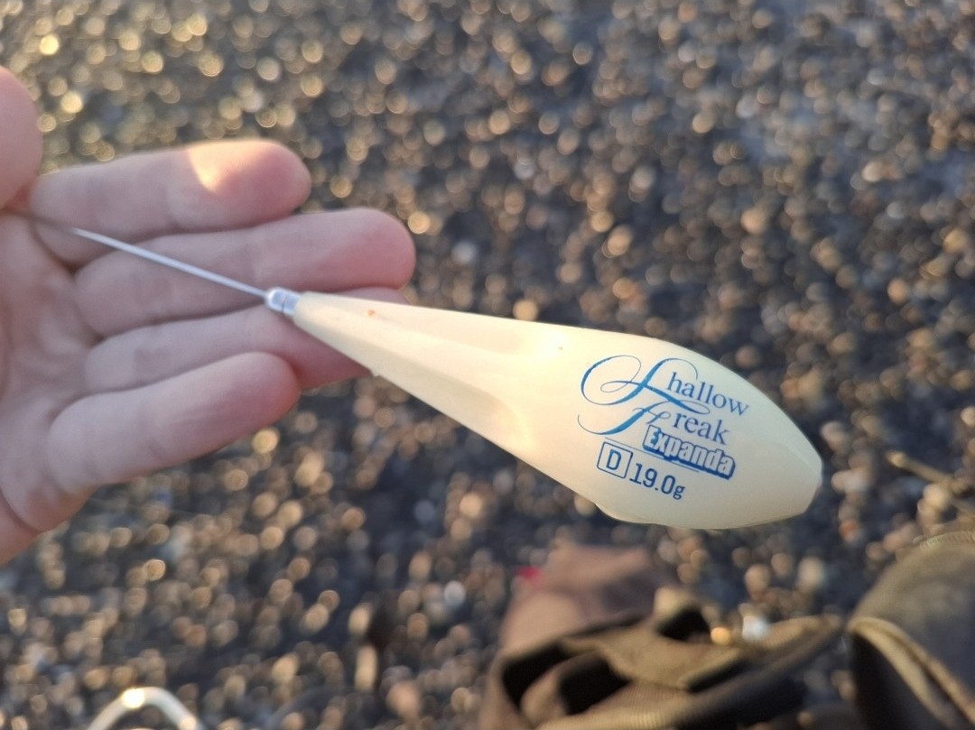 今回はシャローフリークエクスパンダD19.0gにバチコン用ジグヘッド0.7g、ワームは安定の海毛虫2.5inしらす星でやりました。