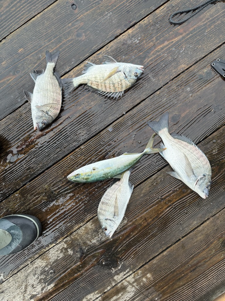気を取り直してダンゴ釣りでは チヌ、ヘダイ、チャリコ(小さい真鯛)、ボラが釣れて4目