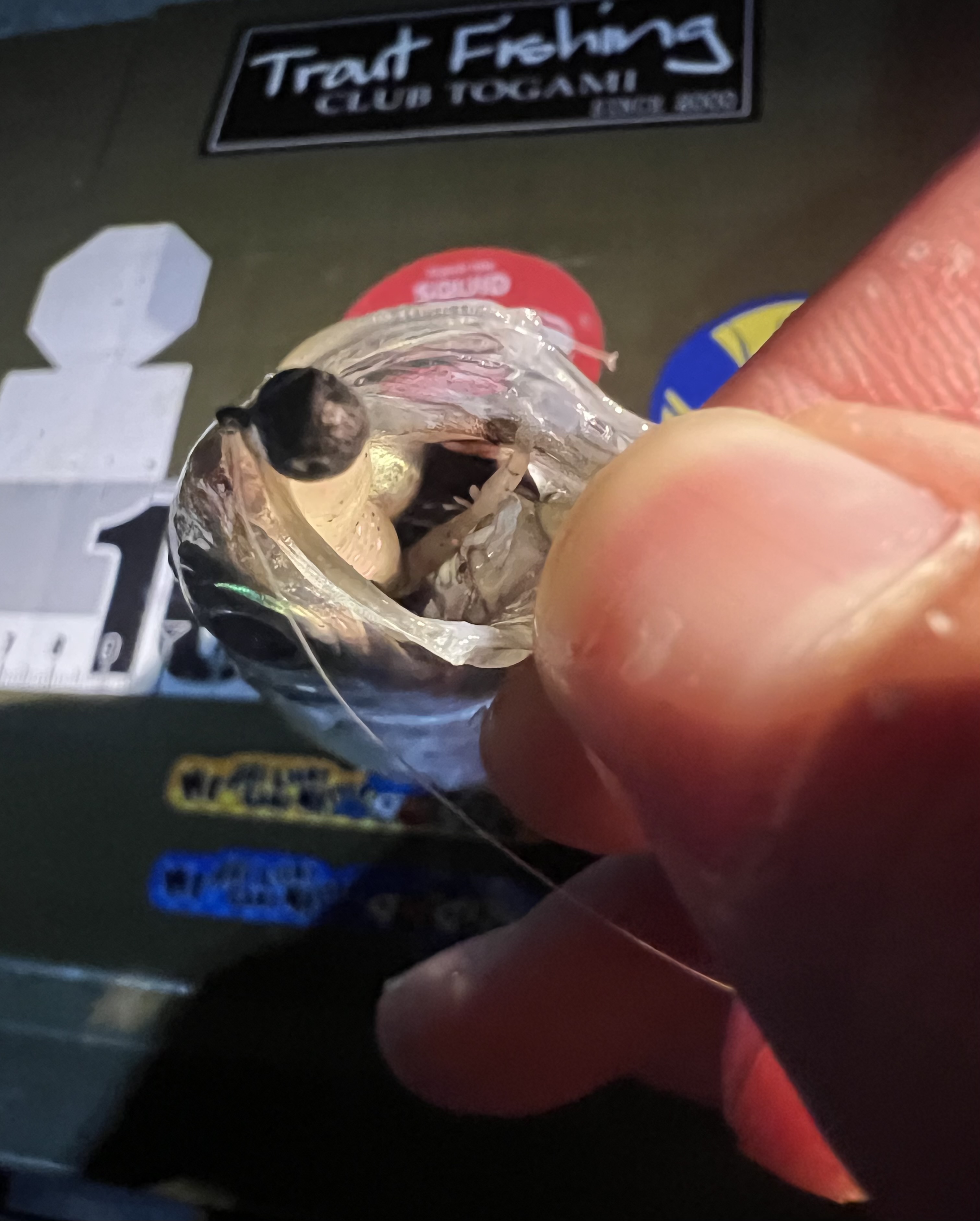 この日はいつも通り知多アジングに行ってきました。レベロク様の豆アジヘッドにキーパーライン様のくにゃーんの遊オリカラであるかっぱアミせんをつけて味のいるレンジを探ります。すると開始数投で16cmのアジをキャッチ!相変わらず時合いは短いもののポツポツと釣り上げていきます。軽くポイントを移動し、ある程度水深のあるポイントへ。重さは変えず、釣り方を巻きから流れに乗せるような釣り方に変更。するとゴンっとしたアタリに凄まじい重さ!エステルラインなので時間をかけてファイトして上がってきたのは、なんと40を軽く超えるヒラメ!バケツでランディングを試みましたが、付属のロープに引っかかりラインブレイク…ヒットルアーはエーテル様のプロキシマのリフレクションクリアでした。
