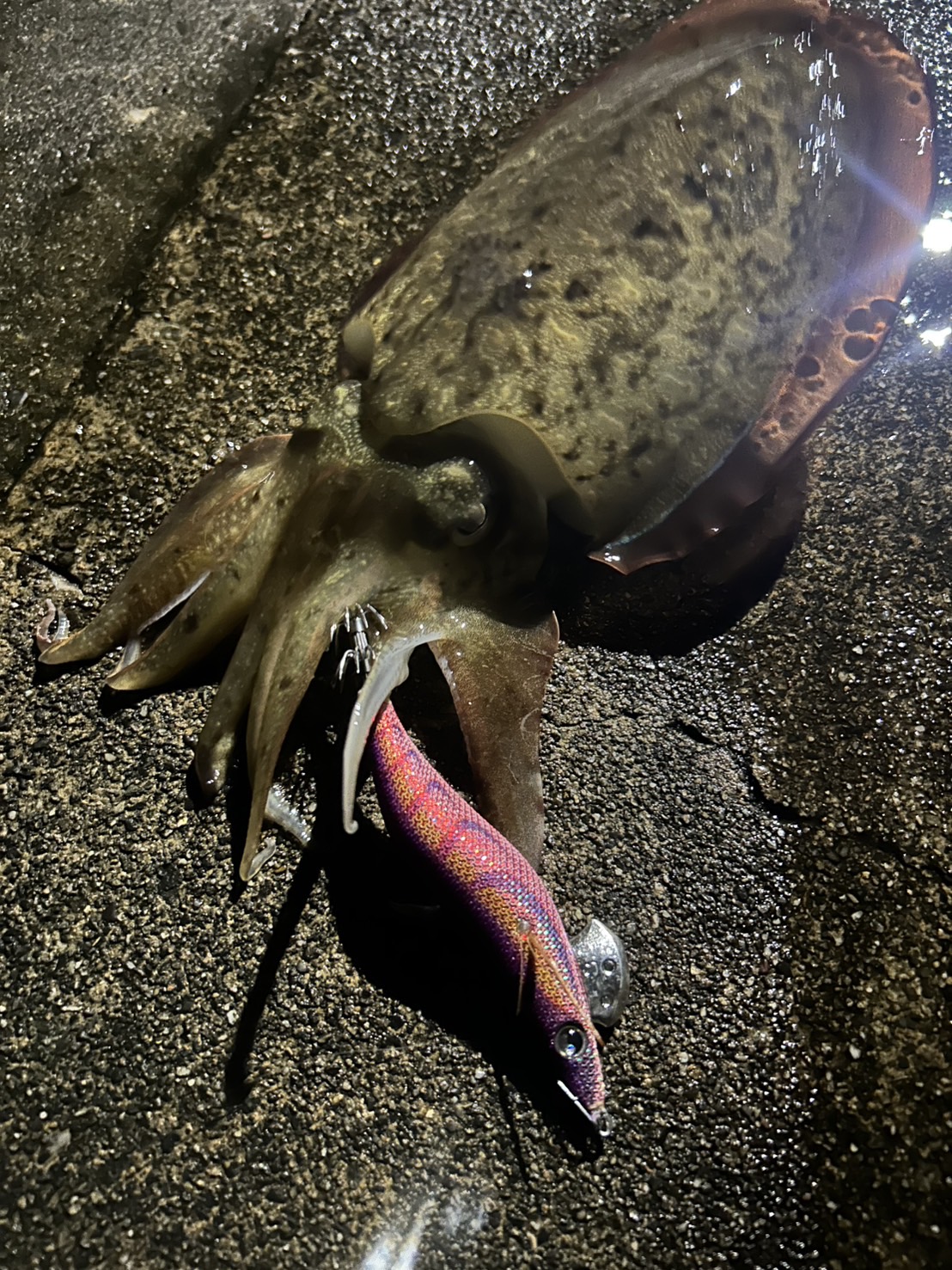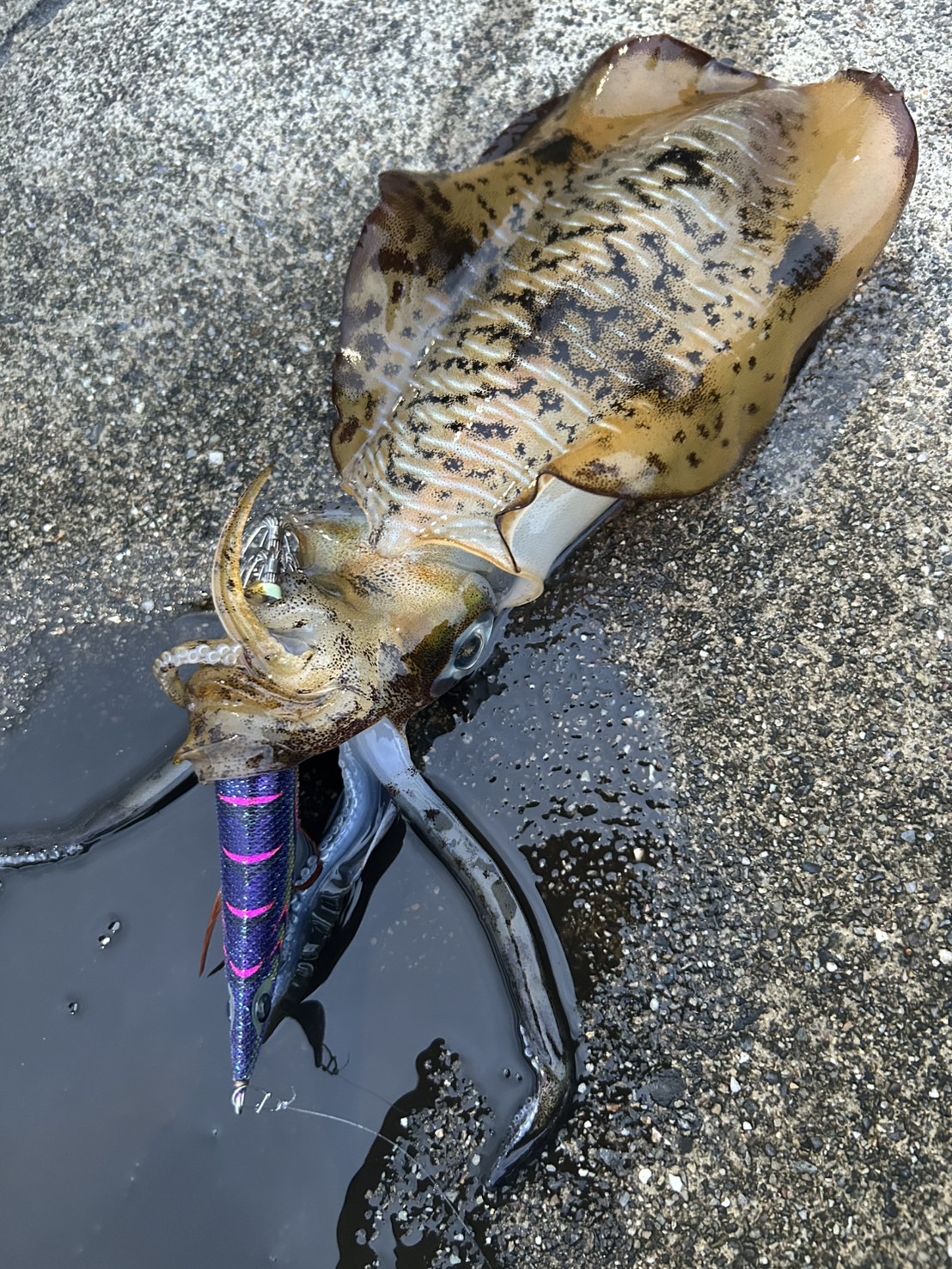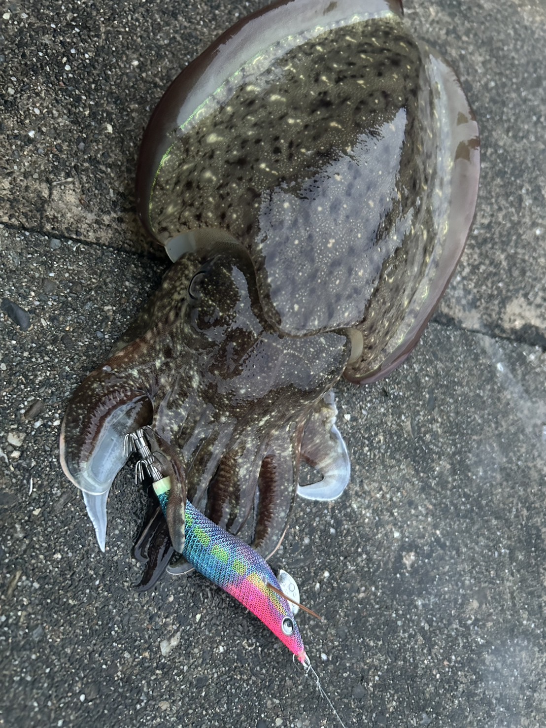 初のコウイカ‼️めっちゃ墨噴射するし…まさか釣れると思ってないから焦る見かねた…となりのおじさんが手伝ってくれました✨