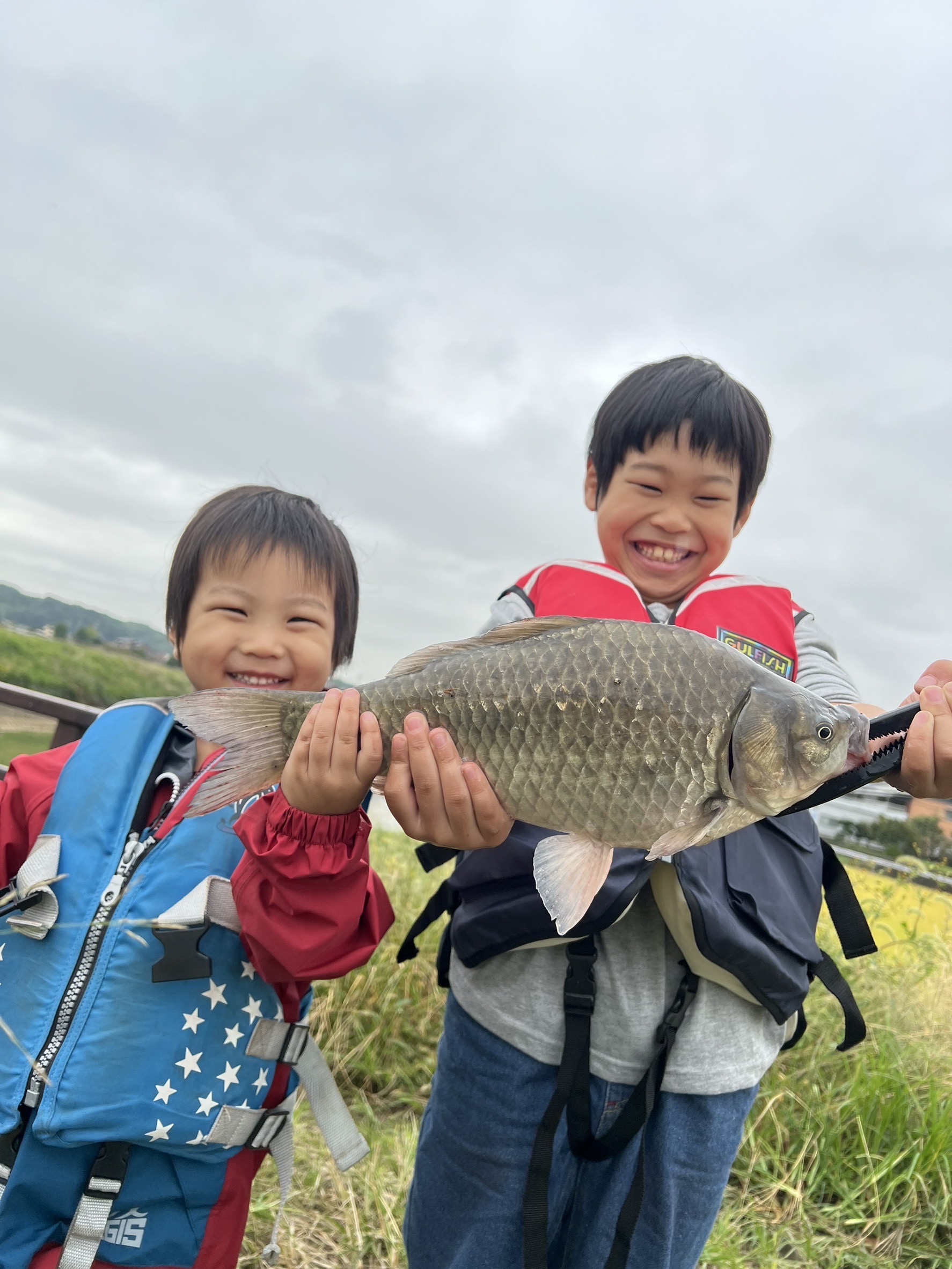 午前中は雨が降らなそうだったので子どもたちと近所の川へフナ釣りへ。