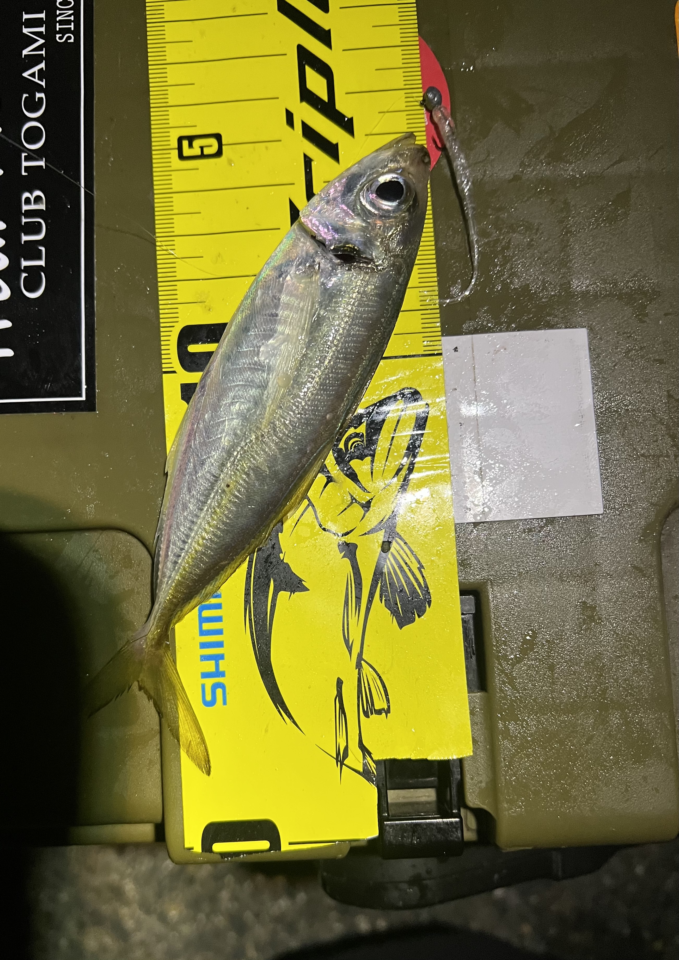 この日も知多半島でアジングをしてきました。潮があまり効いていない様子なのである程度流れのあるポイントに移動し潮に流すように釣っていきます。序盤はキーパーライン様のチョコヘッドミクロ0.6gにくにゃーんのかっぱアミせんを使用。一瞬竿を送ってテンションを抜いた瞬間にヒット!16センチくらいのアジがフックをしっかり吸い込んで釣れてくれました。その後数匹追加してアタリがなくなったためポイントを移動。常夜灯のポイントでそこまで潮が動かずアジが居着いてそうなため、レベロク様の豆アジヘッド0.4gを使用しくにゃーんのファントムを使用。表層で釣れてくれたものの数匹釣るとアタリがなくなりこの日は納竿。