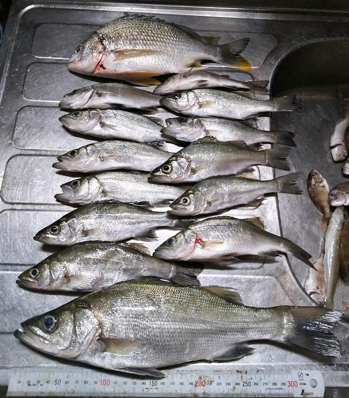 エサを使って何とか75匹釣っていました、セイゴを狙わなければ100に届いた?!次ガンバリマス。