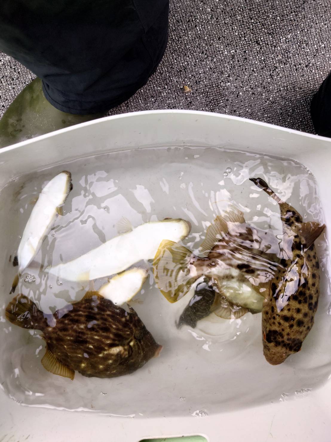七福丸さんにて、再びカワハギ&フグ狙いで行って来ました、メインはカワハギ狙いでエサは冷凍アサリを使用しました、アサリはマルキューのヌルとり5で軽く洗って、バクバクソルトをかけるとヌメリが取れて身がしまって針に付けやすいです、本日は少しカワハギの活性も低く前半9時まではカワハギ2枚でしたが、そこからカワハギもポツポツ掛かる様になり、最終的にカワハギ8枚、フグ8匹、ベラ2匹、カサゴ1匹の釣果でした。カワハギも比較的良型が釣れました、フグも沖上がり後に船で捌いてくれます、食べて絶品のフグとカワハギ是非狙いに行って見て下さい。